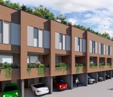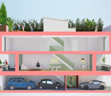 Nuova tipologia di villa a schiera con tetto solarium o giardino pensile (senza giardino al piano te ...