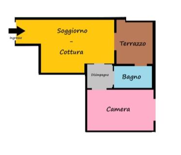 Appartamento in ottime condizioni, composto da Soggiorno con cucina a vista e piccolo terrazzino, 2 ...