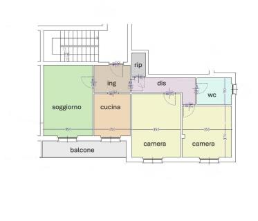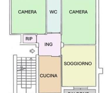 Ottimo appartamento di tre locali in centro paese. Secondo piano. Ingresso soggiorno con cucina sepa ...