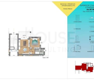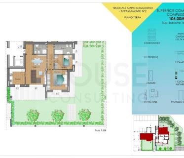 Rif. Appartamento 4 Appartamento al primo piano di tre locali con doppi servizi 130 mq, terrazzo co ...
