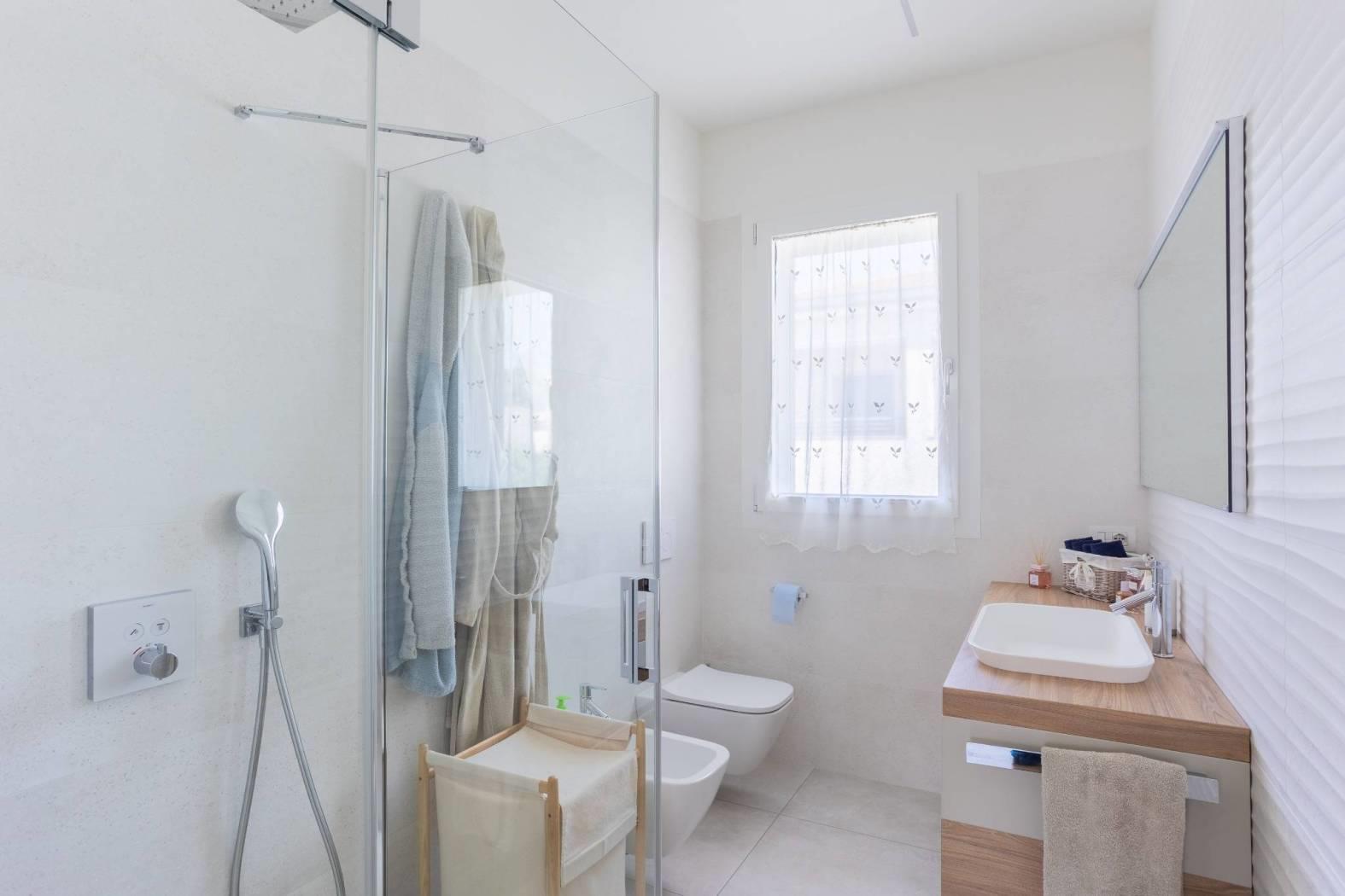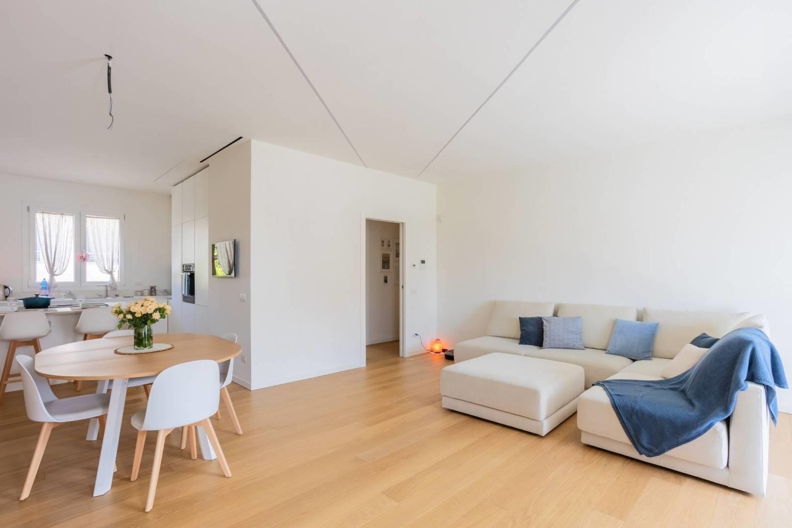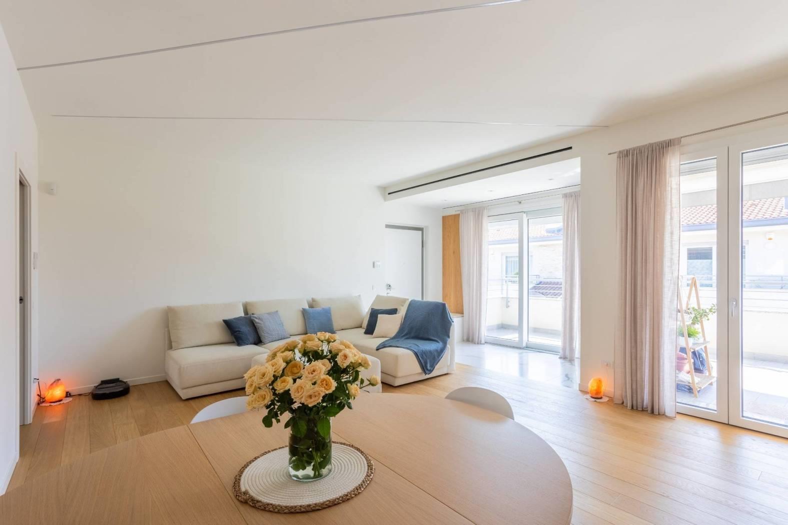 Le finiture extra capitolato in tutti gli ambienti, insieme all'impianto di ventilazione meccanica e al riscaldamento a pompa di calore con pannelli radianti a pavimento con temperatura regolabile in ogni stanza, garantiscono un'ottima qualità della vita. Non mancano l'impianto canalizzato di raffrescamento e i corpi illuminanti a led dimmerabili incassati nel soffitto, per un'atmosfera sempre perfetta. La domotica di base BTICINO e l'impianto di allarme volumetrico e perimetrale completano questo immobile all'avanguardia.