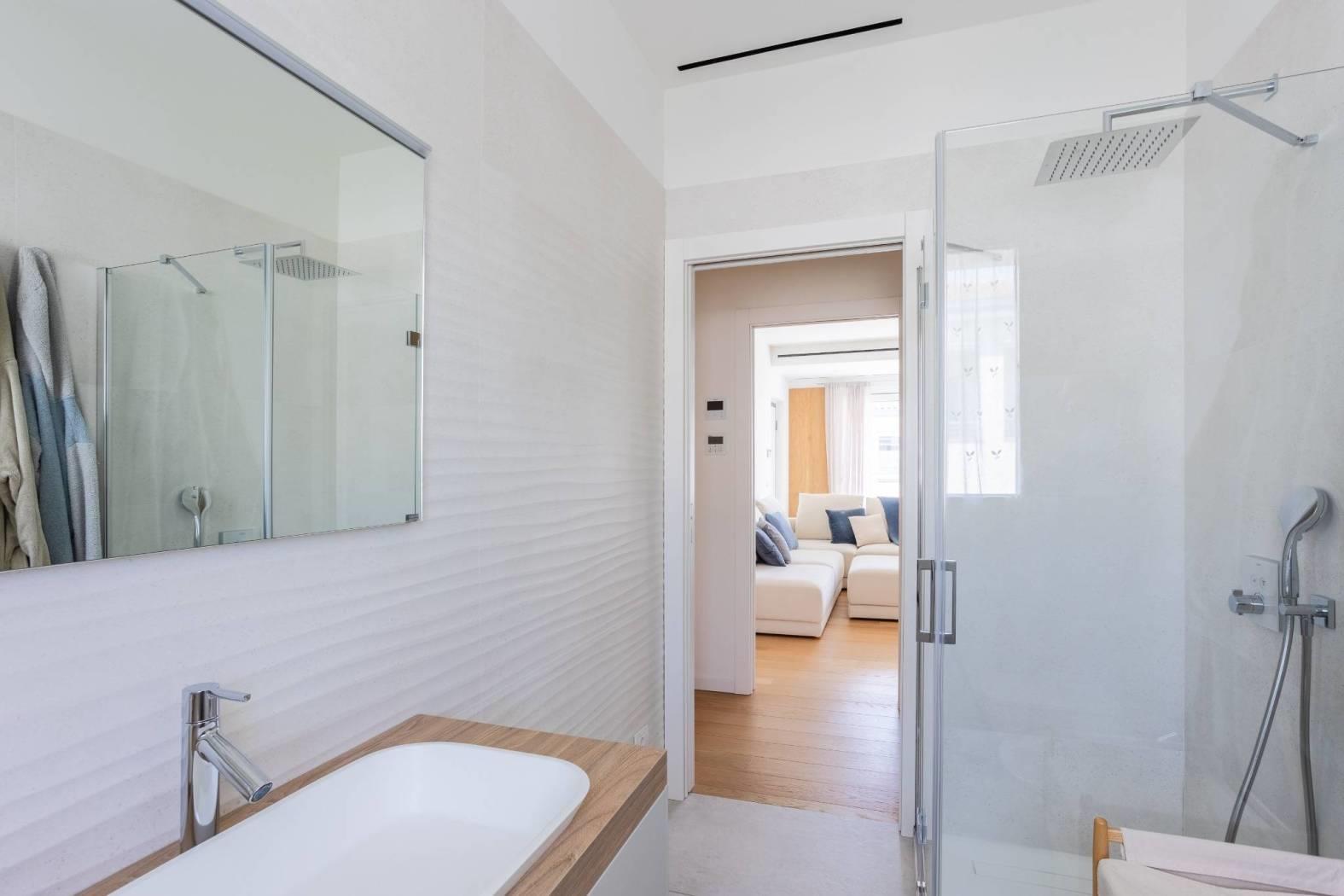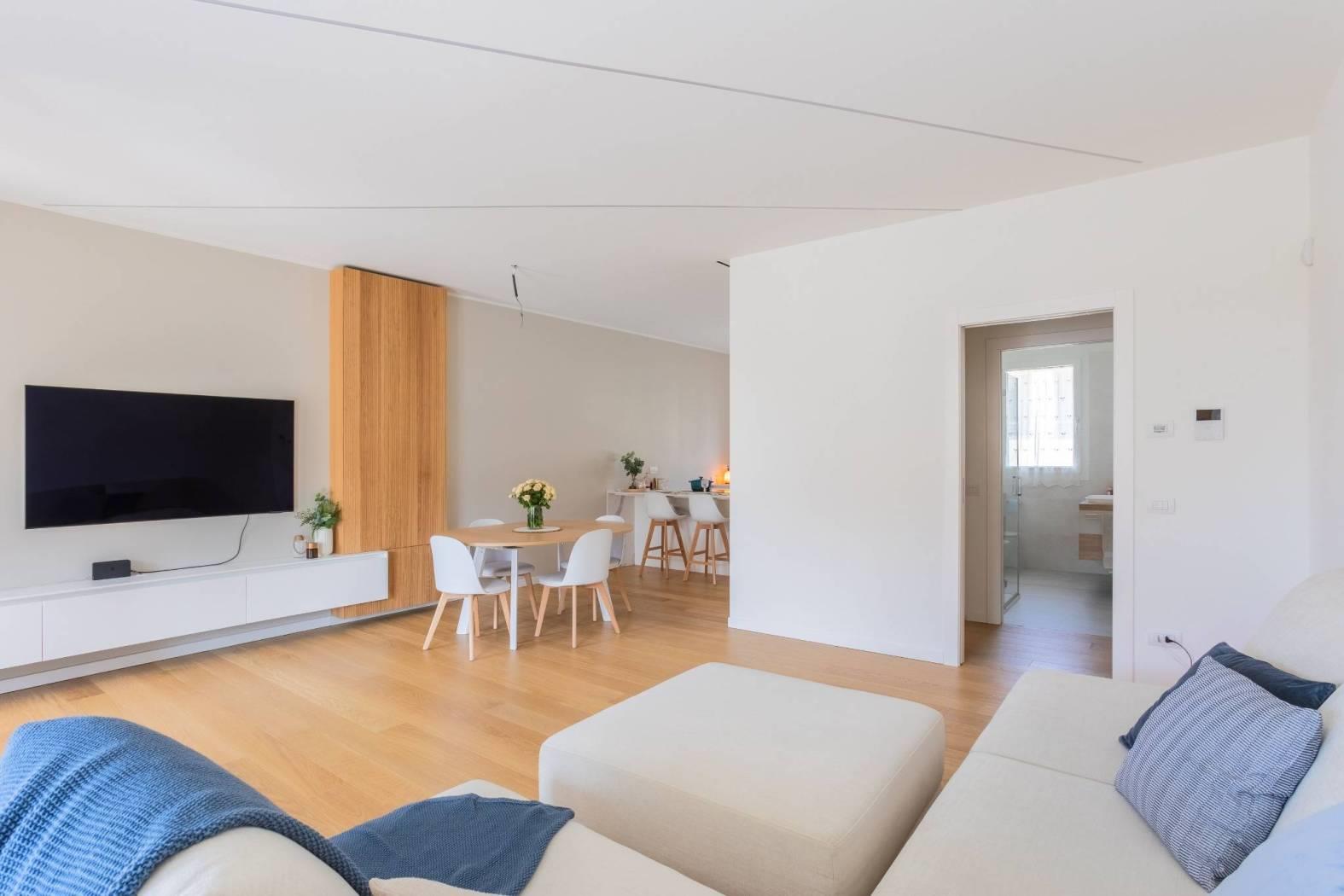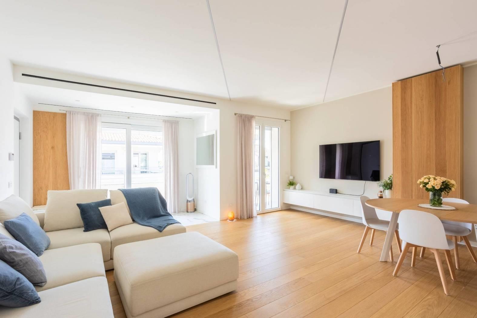 Le finiture extra capitolato in tutti gli ambienti, insieme all'impianto di ventilazione meccanica e al riscaldamento a pompa di calore con pannelli radianti a pavimento con temperatura regolabile in ogni stanza, garantiscono un'ottima qualità della vita. Non mancano l'impianto canalizzato di raffrescamento e i corpi illuminanti a led dimmerabili incassati nel soffitto, per un'atmosfera sempre perfetta. La domotica di base BTICINO e l'impianto di allarme volumetrico e perimetrale completano questo immobile all'avanguardia.