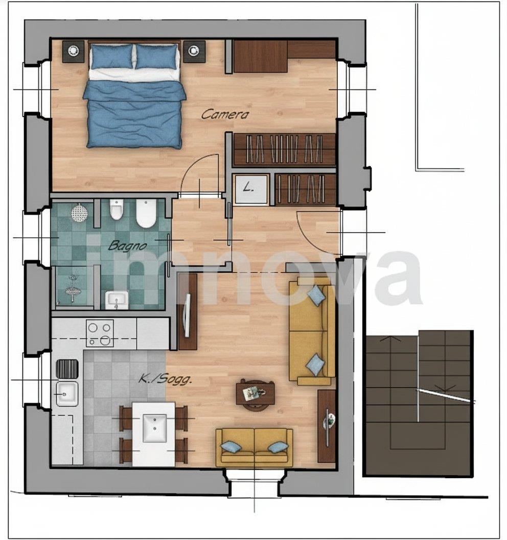 In zona comoda con i principali servizi, proponiamo 2 locali completamente ristrutturato a nuovo posto al piano primo ed ultimo in un contesto senza spese condominiali. L'appartamento è composto dall'ingresso, soggiorno con angolo cottura, camera matrimoniale con cabina armadio e bagno. La soluzione è in fase di completa ristrutturazione: riscaldamento a pavimento con pompe di calore, pannelli fotovoltaici da 1,6 kw e infissi PVC doppio vetro. Possibilità di scelta capitolato. Posto auto interno comune. Classe Energetica ipotizzata A1.