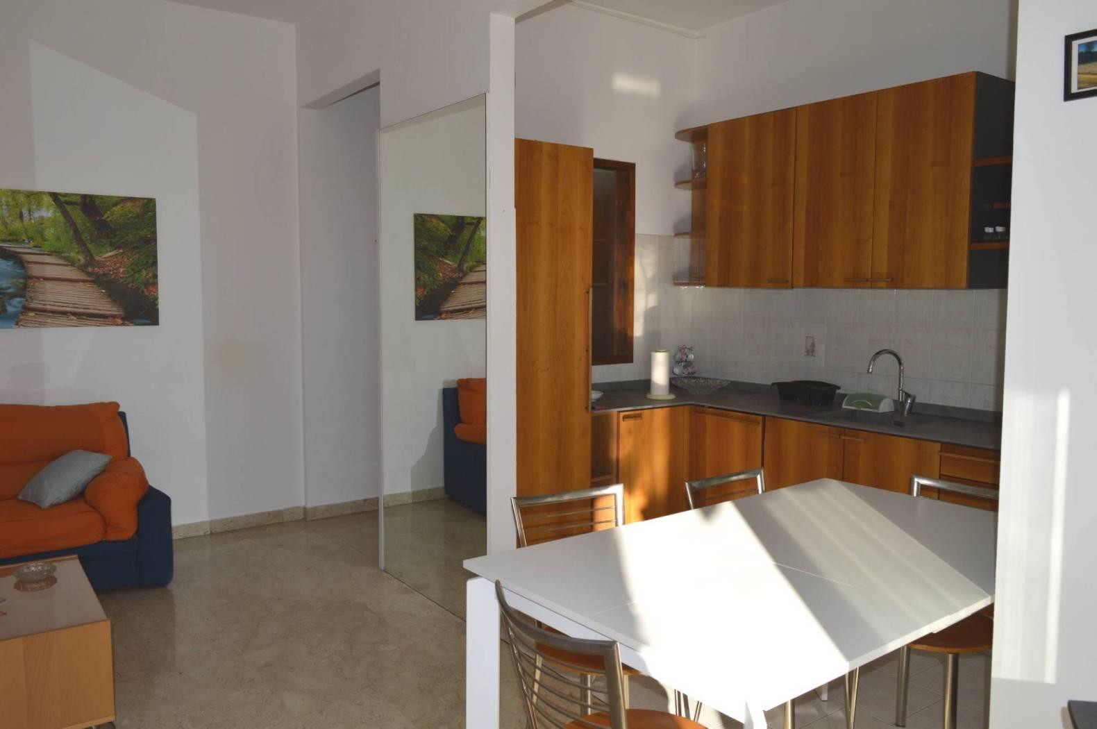 un ingresso, un soggiorno con uscita su un ampio balcone, una cucina semi-abitabile a vista, un bagno (con doccia), una camera matrimoniale ed un ripostiglio.