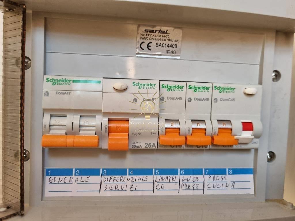 Dispone di una cucina separata e un balcone. Le condizioni interne sono eccellenti: l'impianto elettrico è nuovo, i serramenti sono in doppio vetro PVC e il bagno è stato rifatto completamente, così come le porte. Completano la proprietà un piccolo box auto al piano terra.