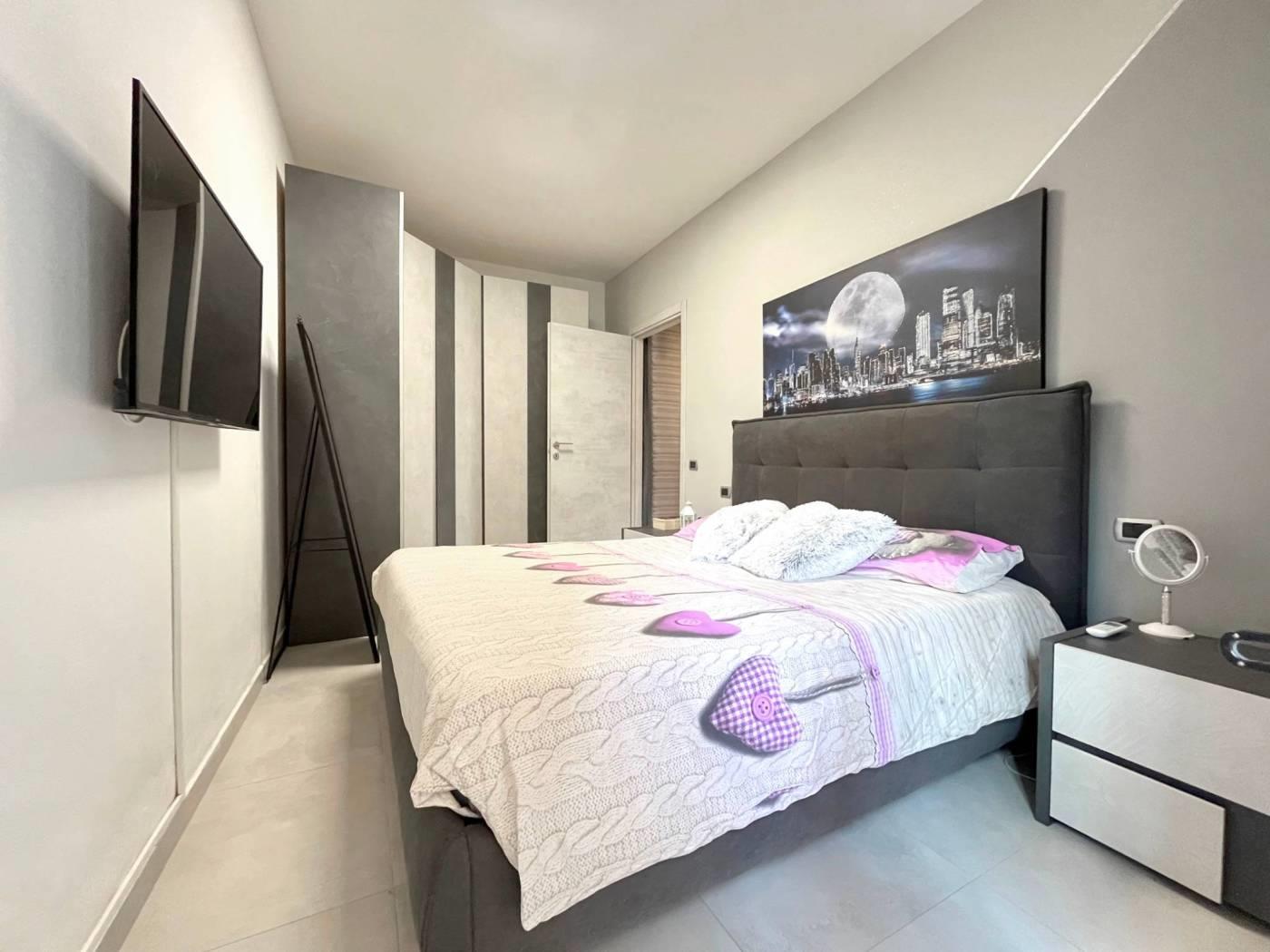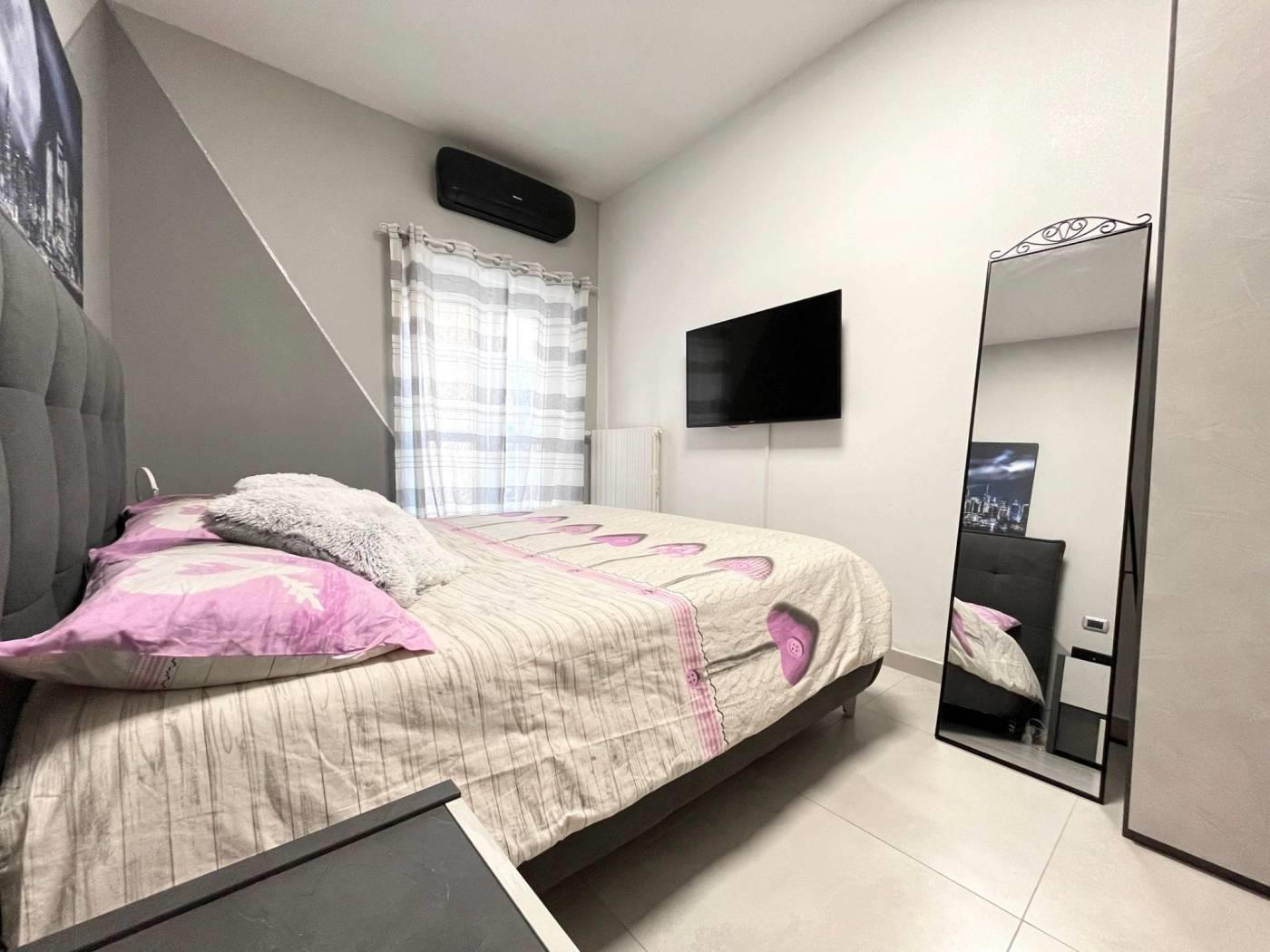 Appartamento completamente ristrutturato internamente di recente (pavimenti, rivestimenti, caldaia a condensazione, porta blindata, porte interne effetto cemento, impianti, condizionatori, serramenti doppio vetro PVC, inferiate di sicurezza).