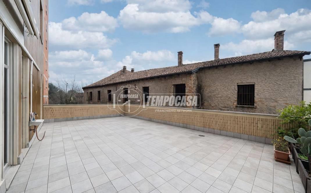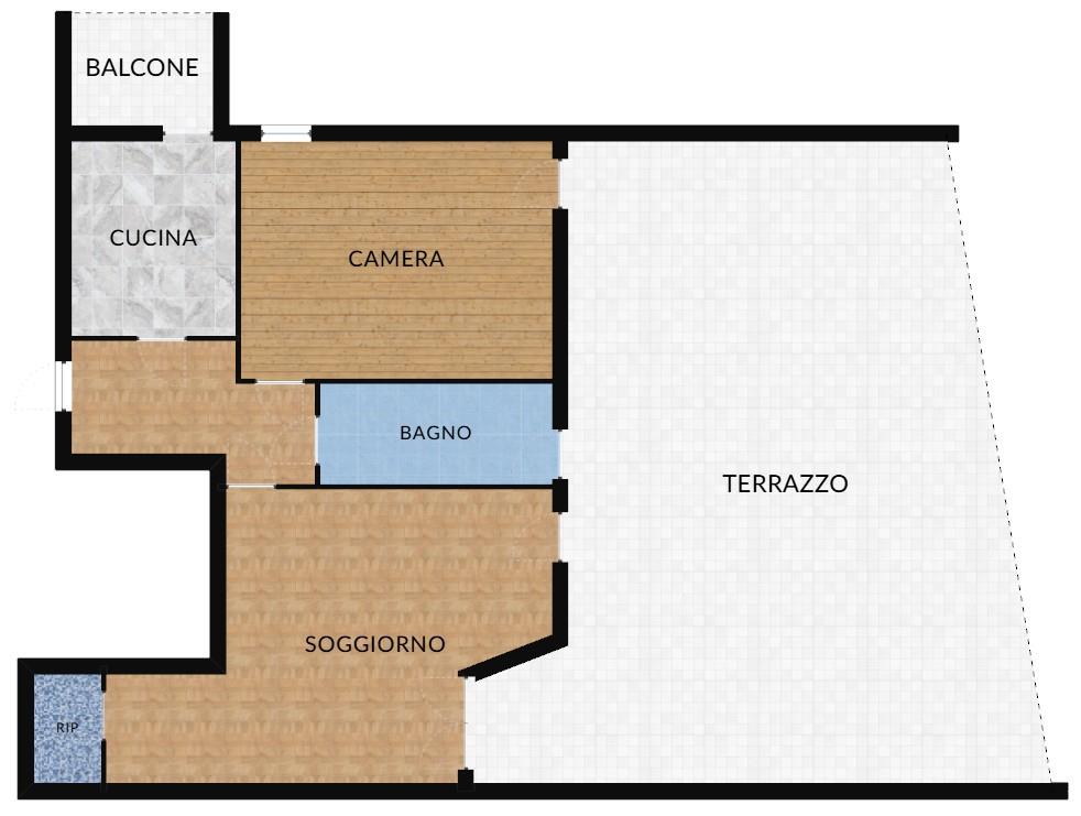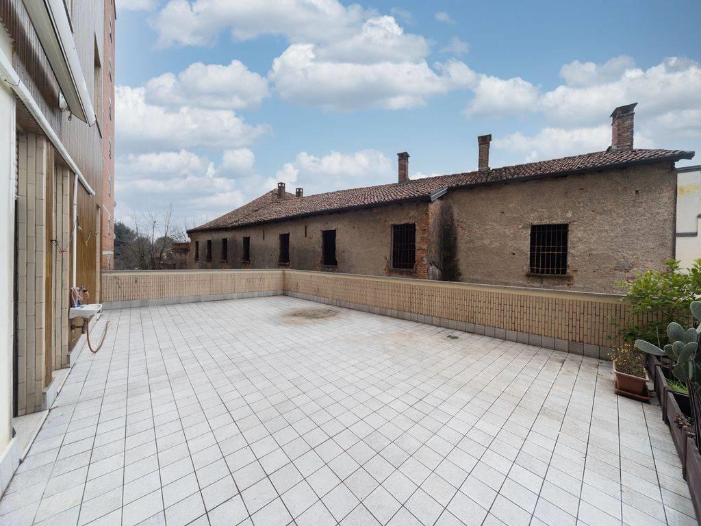 La cucina è separata e abitabile, pratica e ben sfruttabile, con uscita dedicata su un proprio balcone, perfetto come sfogo esterno di servizio. La zona notte è composta da una camera da letto spaziosa e facilmente arredabile e da un bagno finestrato che garantisce aerazione naturale e comfort quotidiano. Il vero punto di forza dell’immobile è rappresentato dallo splendido terrazzo di circa 70 mq, uno spazio raro da trovare in zona centrale: soggiorno, bagno e camera da letto hanno accesso diretto a questo ampio ambiente esterno, ideale per momenti di relax, cene all’aperto o per chi desidera uno spazio vivibile in ogni stagione. Completa la proprietà una comoda cantina al piano interrato e vi è la possibilità di un box auto, valore aggiunto importante per chi desidera maggiore praticità nel cuore della città.