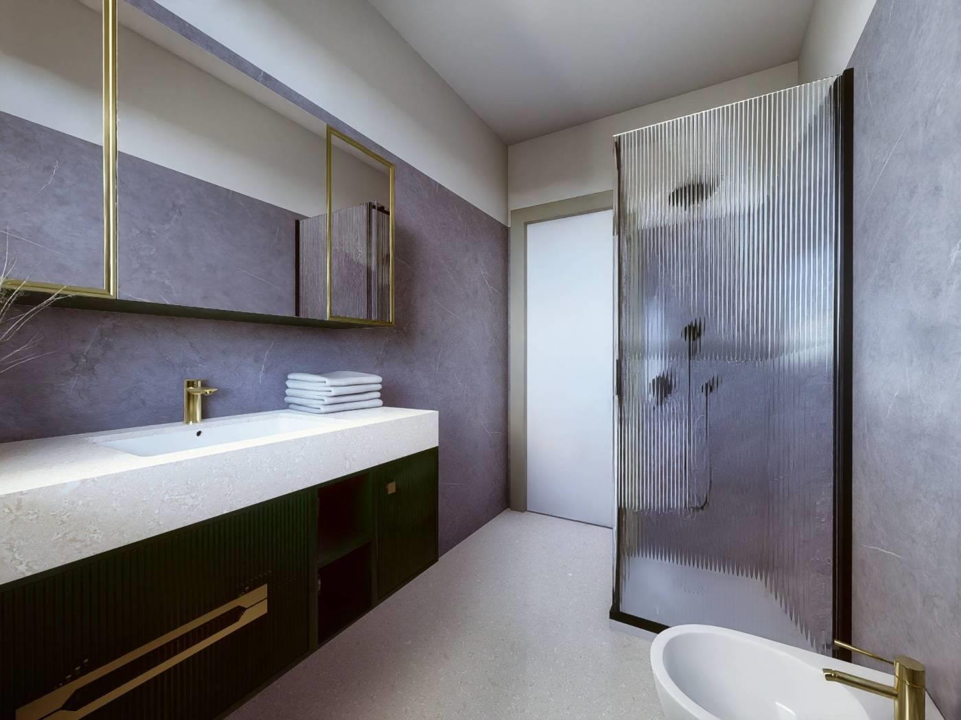 I pavimenti saranno in piastrelle di gres fine porcellanato smaltato, i rivestimenti dei bagni saranno posati fino ad un'altezza di m 2. Tutte le campionature saranno presenti all'interno dello showroom di riferimento.