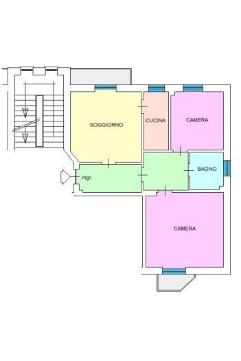3 locali 85 mq. Appartamento al quarto piano, senza ascensore, composto da soggiorno con cucinino, 2 ampie camere, bagno. 2 balconi.