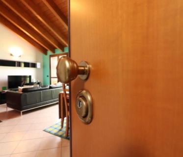La scala interna conduce all'appartamento al primo ed ultimo piano (sopra non ci sono abitazioni) ed è composto da un ingresso, un grande soggiorno con zona cucina, una bagno recentemente ristrutturato, due comode camere da letto e un balcone. Anche le persiane sono state sostituite di recente con quelle nuove in alluminio effetto legno.