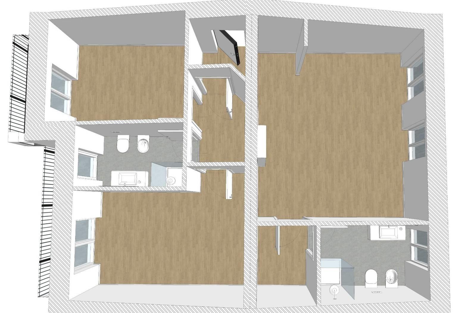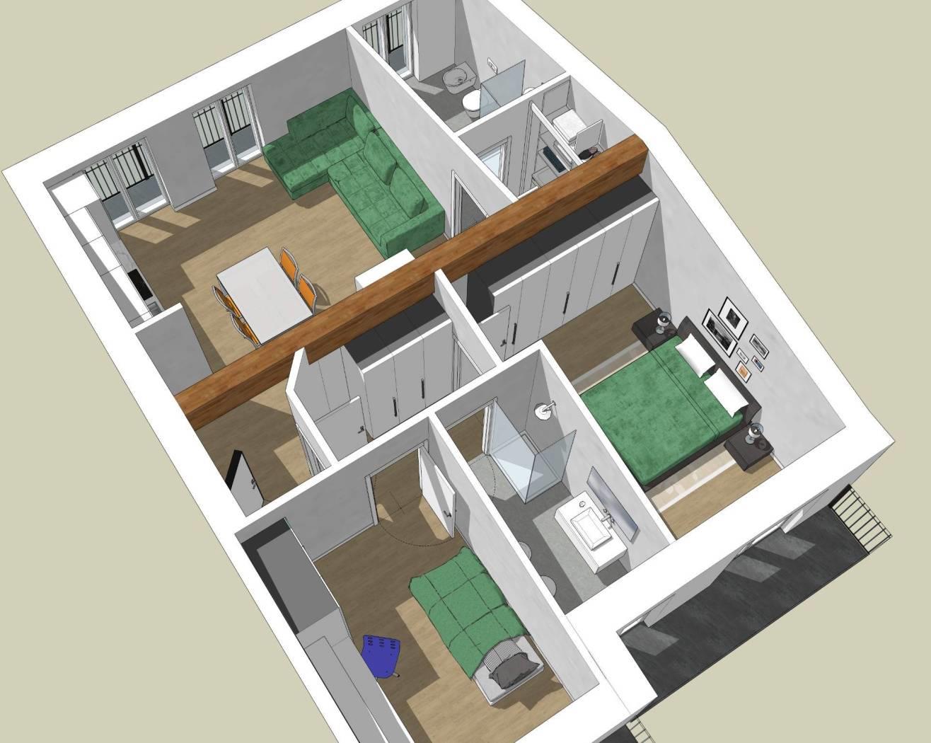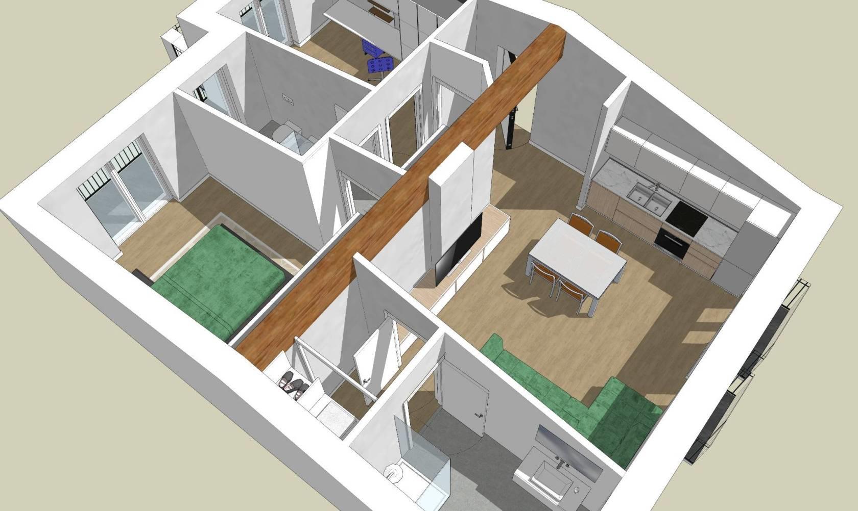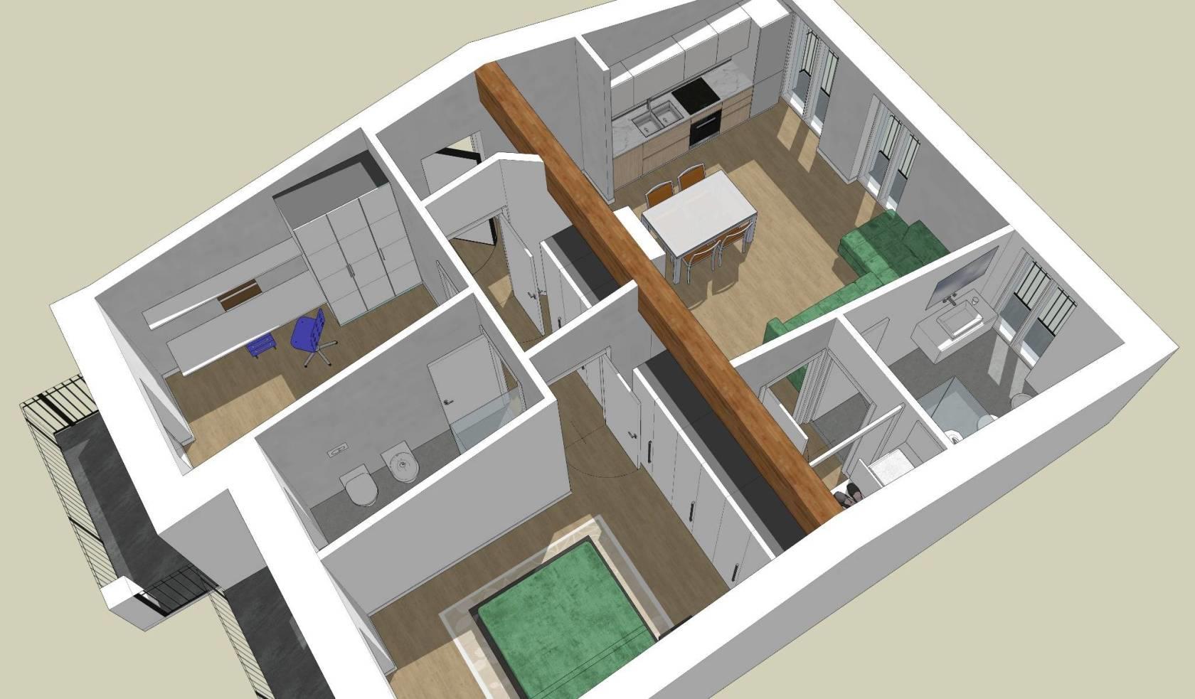 Edificio già esistente che sarà oggetto nei prossimi mesi di ristrutturazione integrale per ricavare 3 appartamenti. In quello che attualmente è il sottotetto dell'edificio verrà realizzato un 3 locali con doppi servizi finestrati e doppi posto auto di proprietà. L'appartamento sarà autonomo, con riscaldamento a pavimento e con la possibilità di personalizzare disposizione interna e finiture; il soffitto sarà in legno a vista con ottime altezze interne e grande luminosità degli ambienti grazie alla presenza di portefinestra che affacceranno su balconi o su poggioli. Le spese condominiali saranno limitate al vano scala in quanto il contesto sarà abitato da sole 4/5 famiglie. Adiacente al contesto oggetto della ristrutturazione è attualmente presente un fabbricato di vecchia edificazione che sarà oggetto di ristrutturazione o demolizione e ricostruzione nei prossimi mesi. All'appartamento avrà un piccolo ripostiglio sul vano scala ed un doppio posto auto di prorietà al piano terra che verrà chiuso da cancello automatico. L'acquisto non sarà gravato da IVA poichè l'operazione immobiliare viene fatta da privati e le somme versate in anticipo saranno comunque garantite da fidejussione.