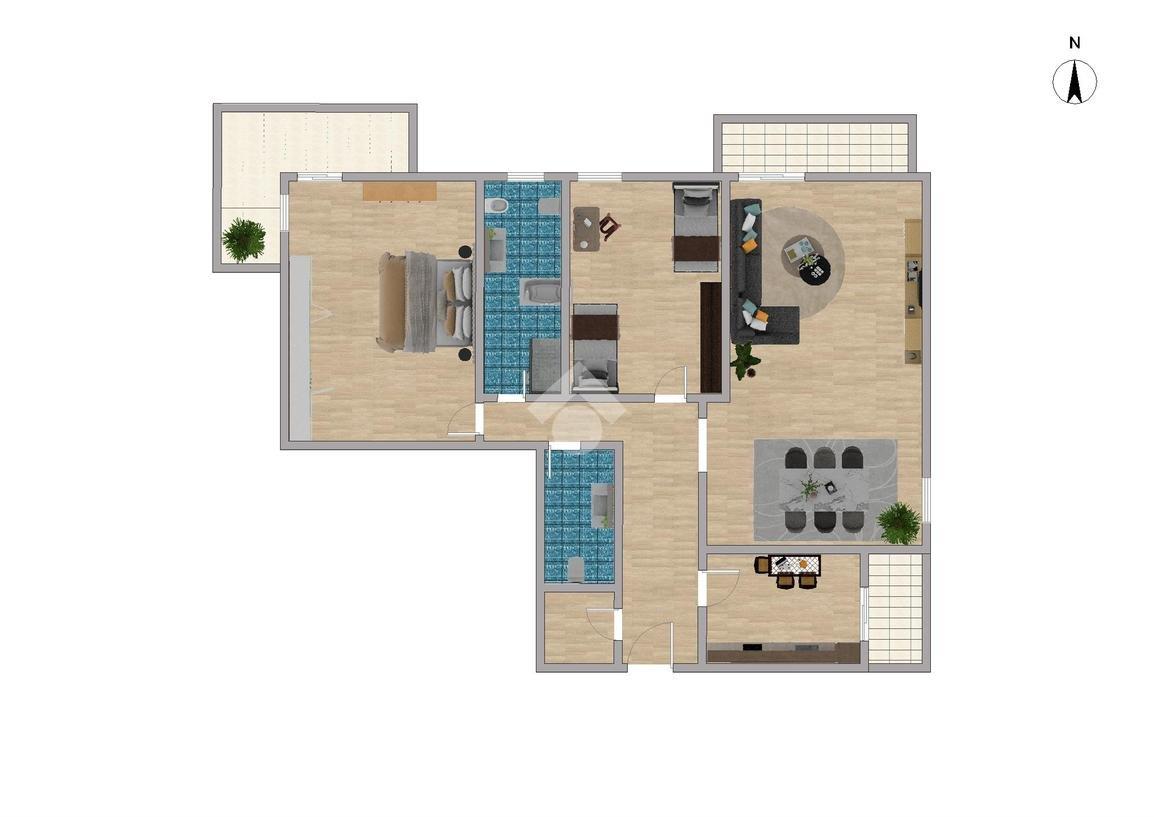 La zona giorno è caratterizzata da un ampio e luminoso soggiorno collegato a uno dei tre balconi che arricchiscono l'abitazione. La cucina è abitabile e ha sfogo su un pratico balcone.