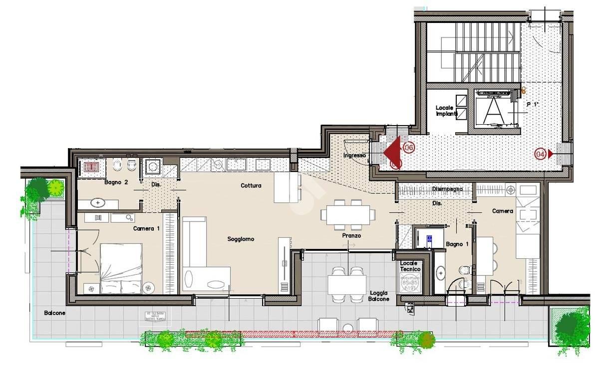 Appartamento dotato di domotica di ultima generazione in grado di controllare illuminazione, tapparelle, temperatura interna, videocitofonia, consumi energetici e sistemi di antintrusione. Il tutto comodamente da remoto tramite smartphone.