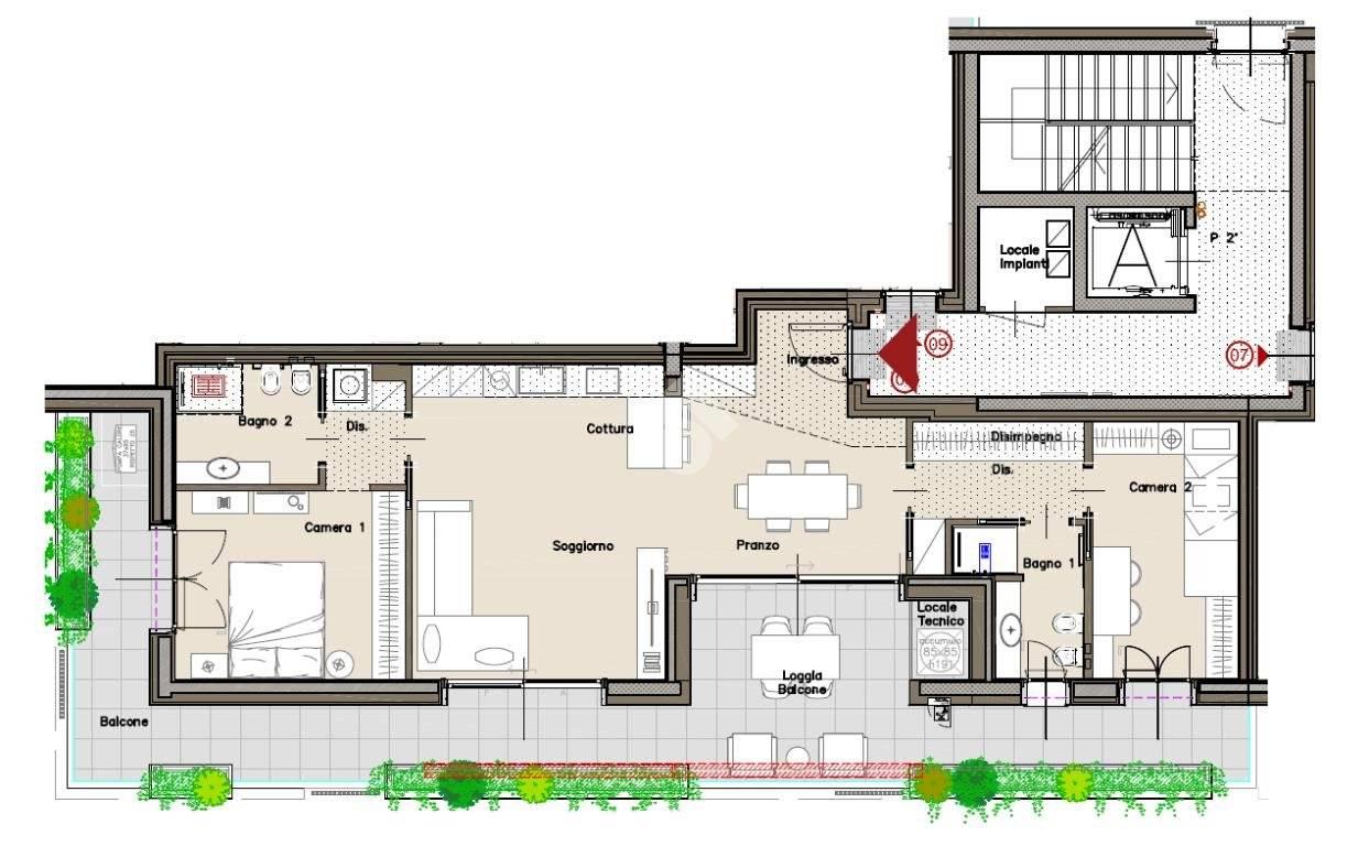 Appartamento dotato di domotica di ultima generazione in grado di controllare illuminazione, tapparelle, temperatura interna, videocitofonia, consumi energetici e sistemi di antintrusione. Il tutto comodamente da remoto tramite smartphone.