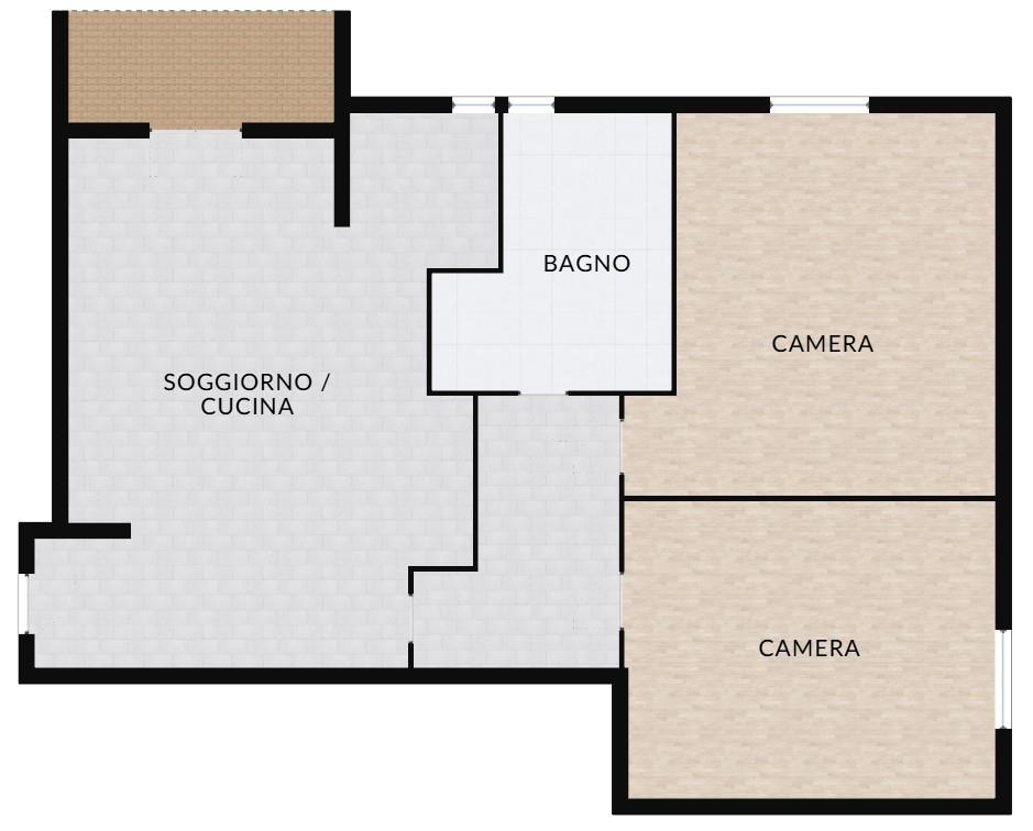 L’ingresso conduce in un luminoso soggiorno con cucina a vista, uno spazio accogliente e funzionale pensato per vivere al meglio la quotidianità.