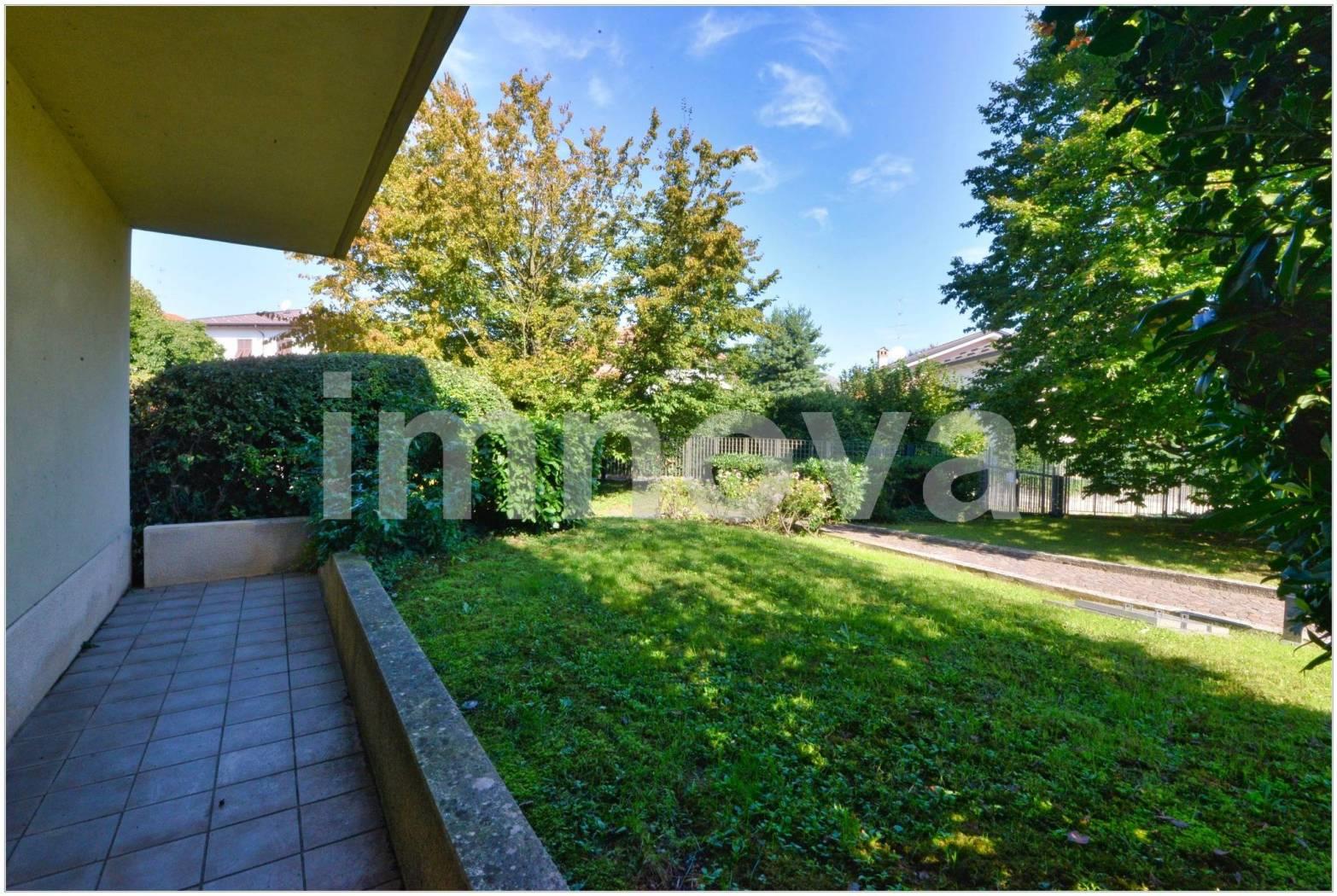 In contesto residenziale e signorile, proponiamo 4 locali posto al piano terra con giardino, contornato da ampi spazi verdi e immersa nella tranquillità ma a poca distanza dai principali servizi e dalla stazione Trenord. La soluzione è composta da ingresso, soggiorno doppio, cucina abitabile, tre camere e doppi servizi; la scala interna conduce al piano interrato dove troviamo un open space, locale caldaia e lavanderia. Il box di circa 40 mq completa la proprietà. Il giardino, che circonda l'immobile sui tre lati è di 180 mq. Classe Energetica in Fase di Rilascio.