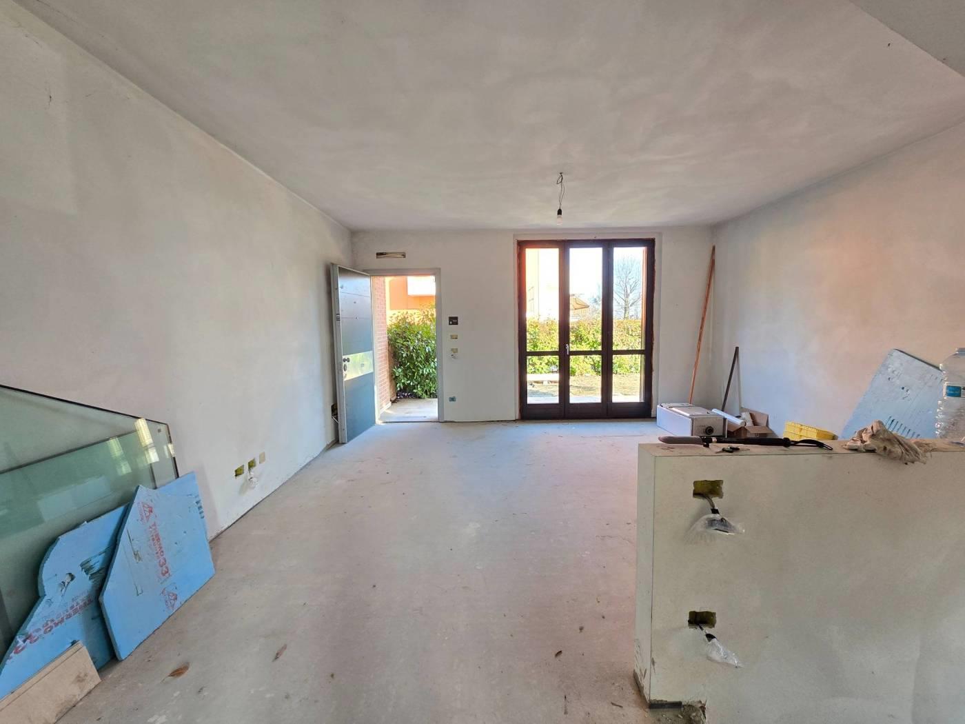 Esternamente giardino privato con esposizione aperta sul verde, con sistemazione prevista del giardino e dell’attuale pavimentazione esterna. L’immobile è dotato di cappotto termico esterno, riscaldamento a pavimento autonomo e predisposizione per climatizzazione.