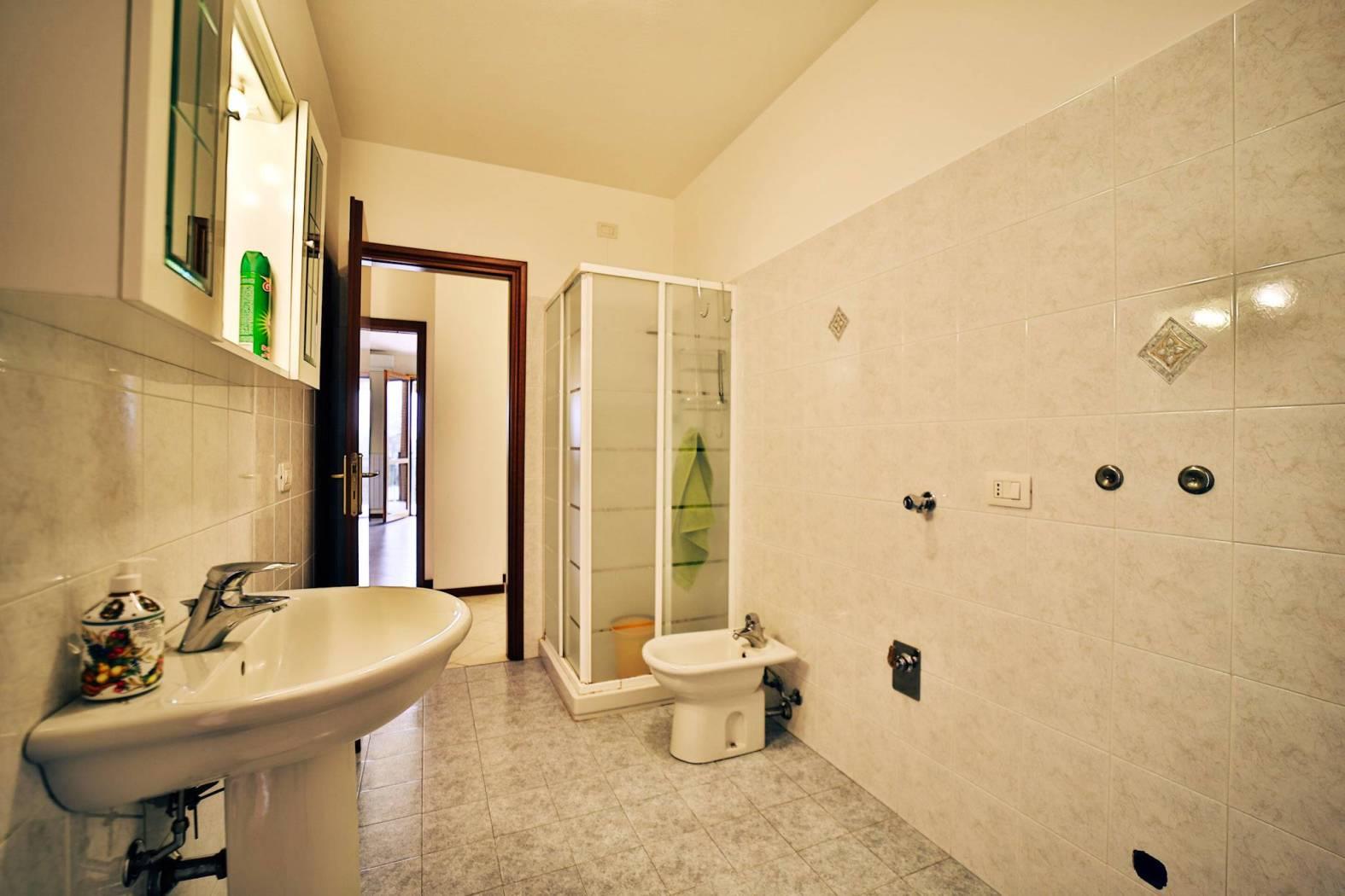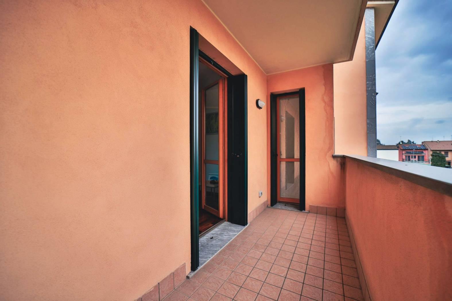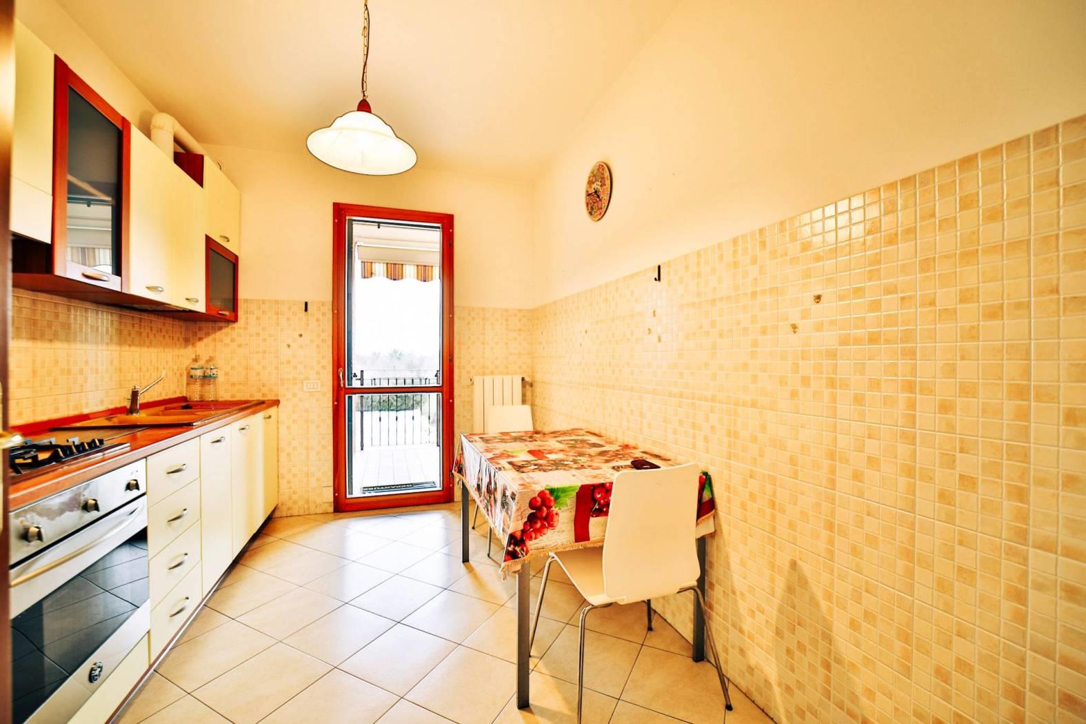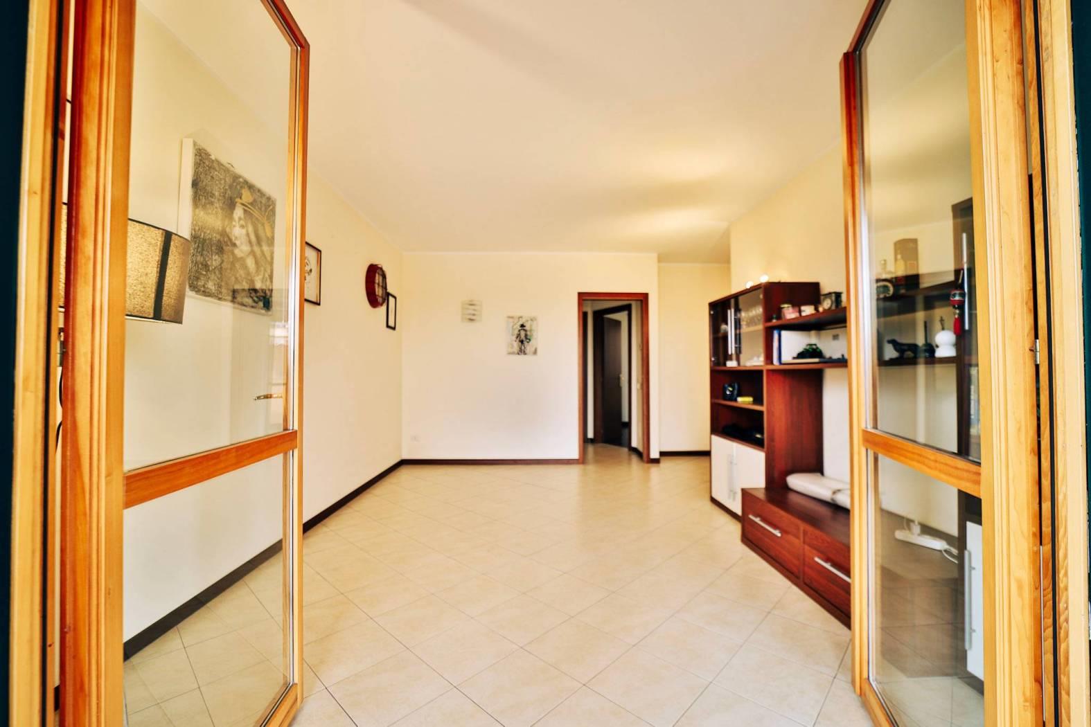 L’appartamento è composto da un ingresso ed ampio soggiorno luminoso e cucina abitabile entrambi con affaccio sul loggiato.