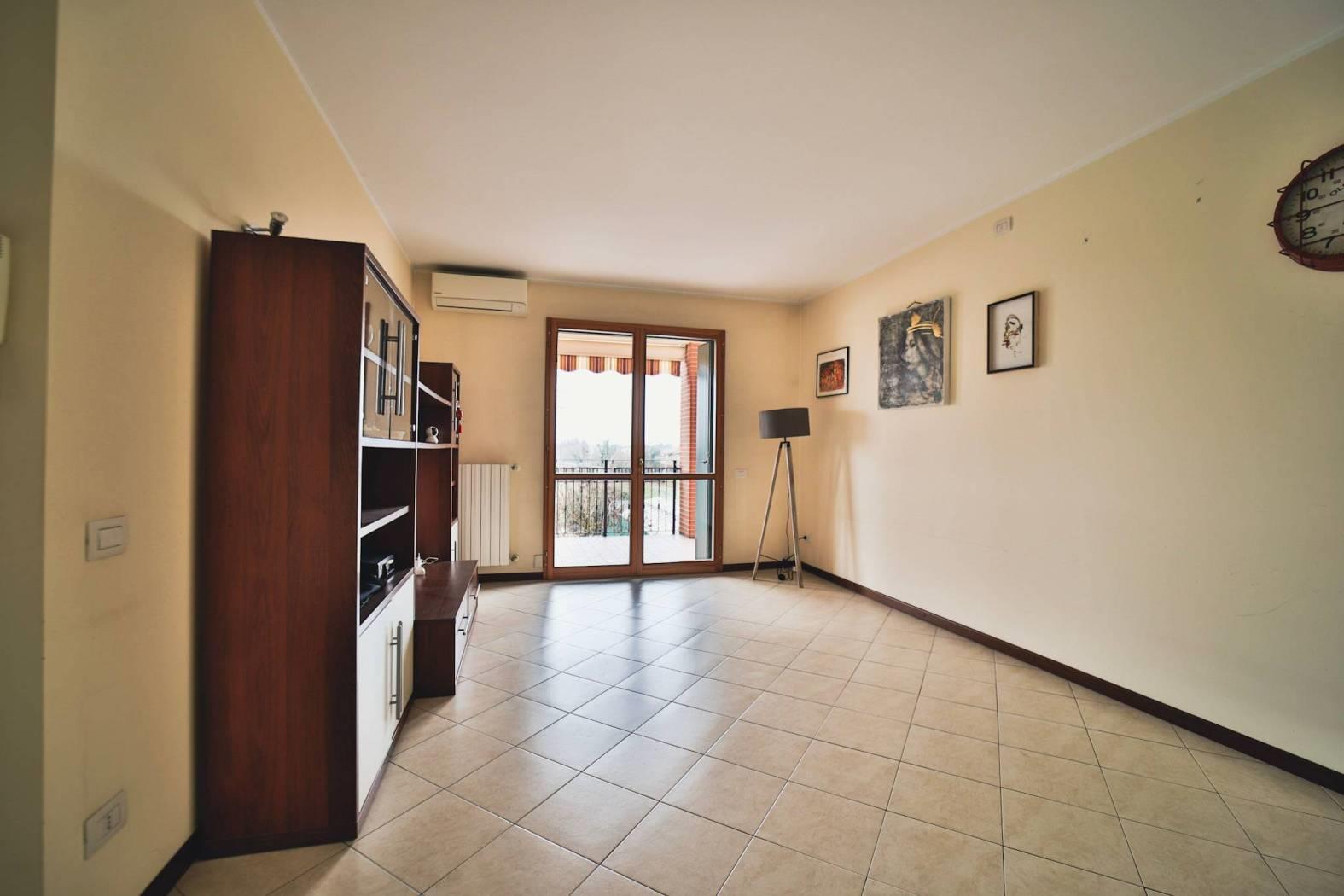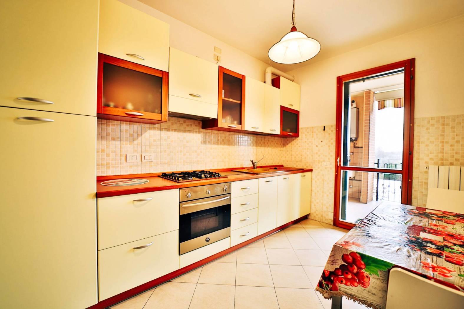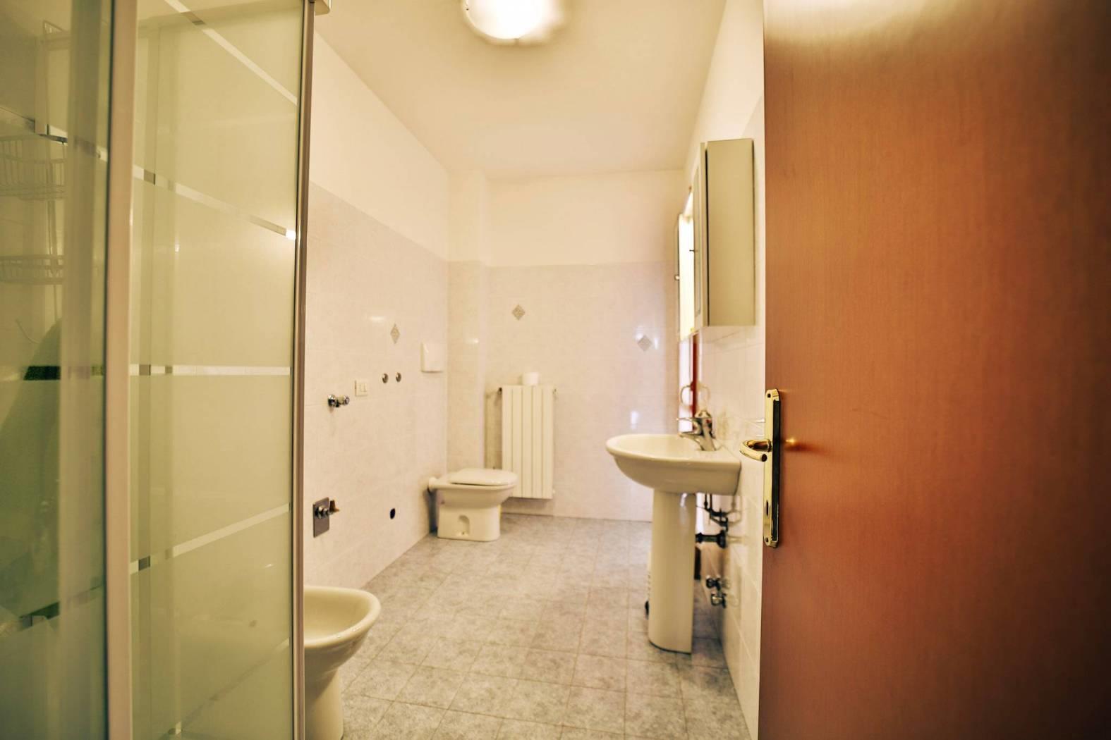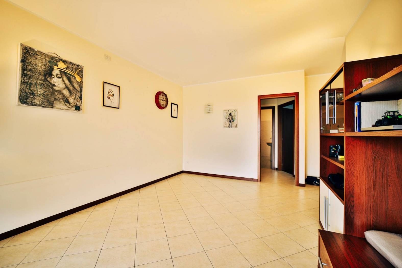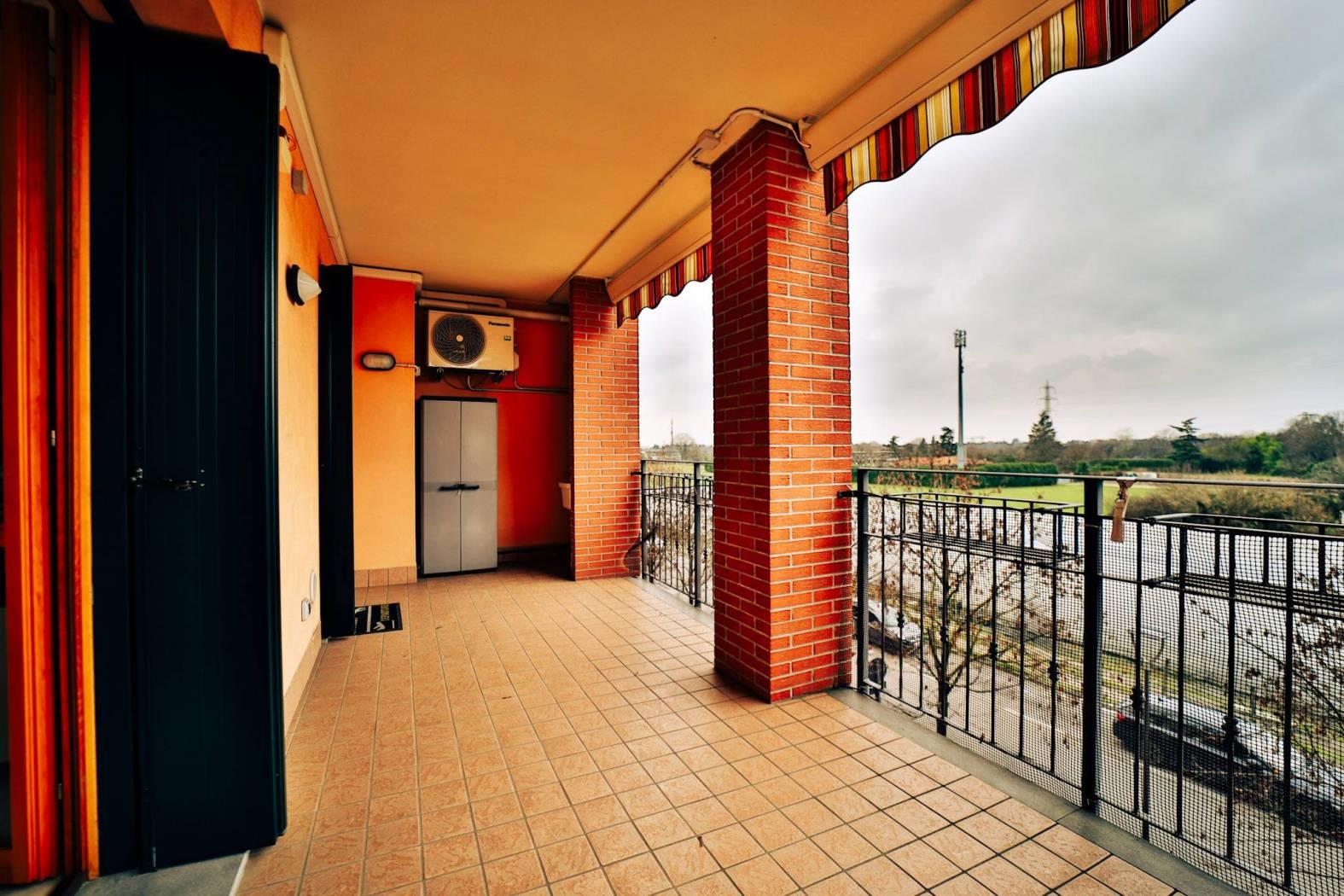 L’appartamento è composto da un ingresso ed ampio soggiorno luminoso e cucina abitabile entrambi con affaccio sul loggiato.