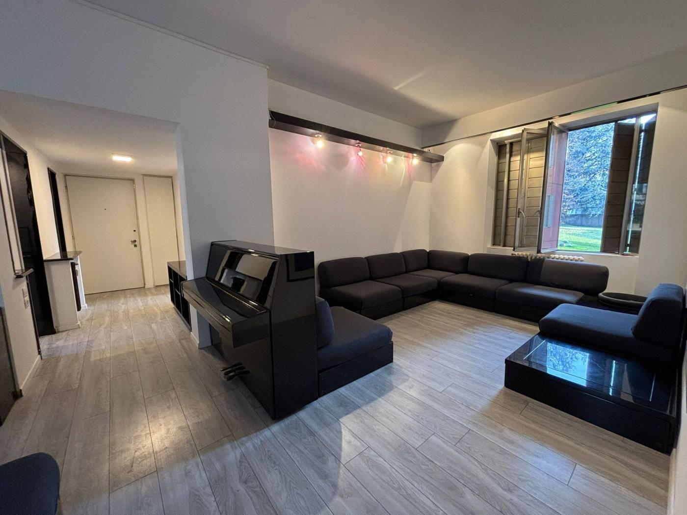 In palazzina signorile immersa nel parco condominiale. L' appartamento di quattro locali posto al piano primo è così composto: ingresso, soggiorno ampio con doppia esposizione, cucina abitabile con balcone. Una prima camera con bagno privato dotato di piatto doccia e attacco per la lavatrice. Il disimpegno conduce alla zona notte che ospita altre due camere da letto e il bagno padronale con vasca. La proprietà è completata dalle due cantine e dal box singolo. Riscaldamento centralizzato a consumo, le spese condominiali annue sono di circa di €. 2.000,00.