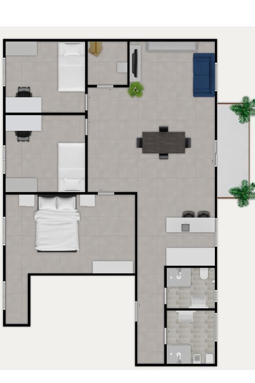 La zona notte invece è composta dalla camera matrimoniale e da due camerette.