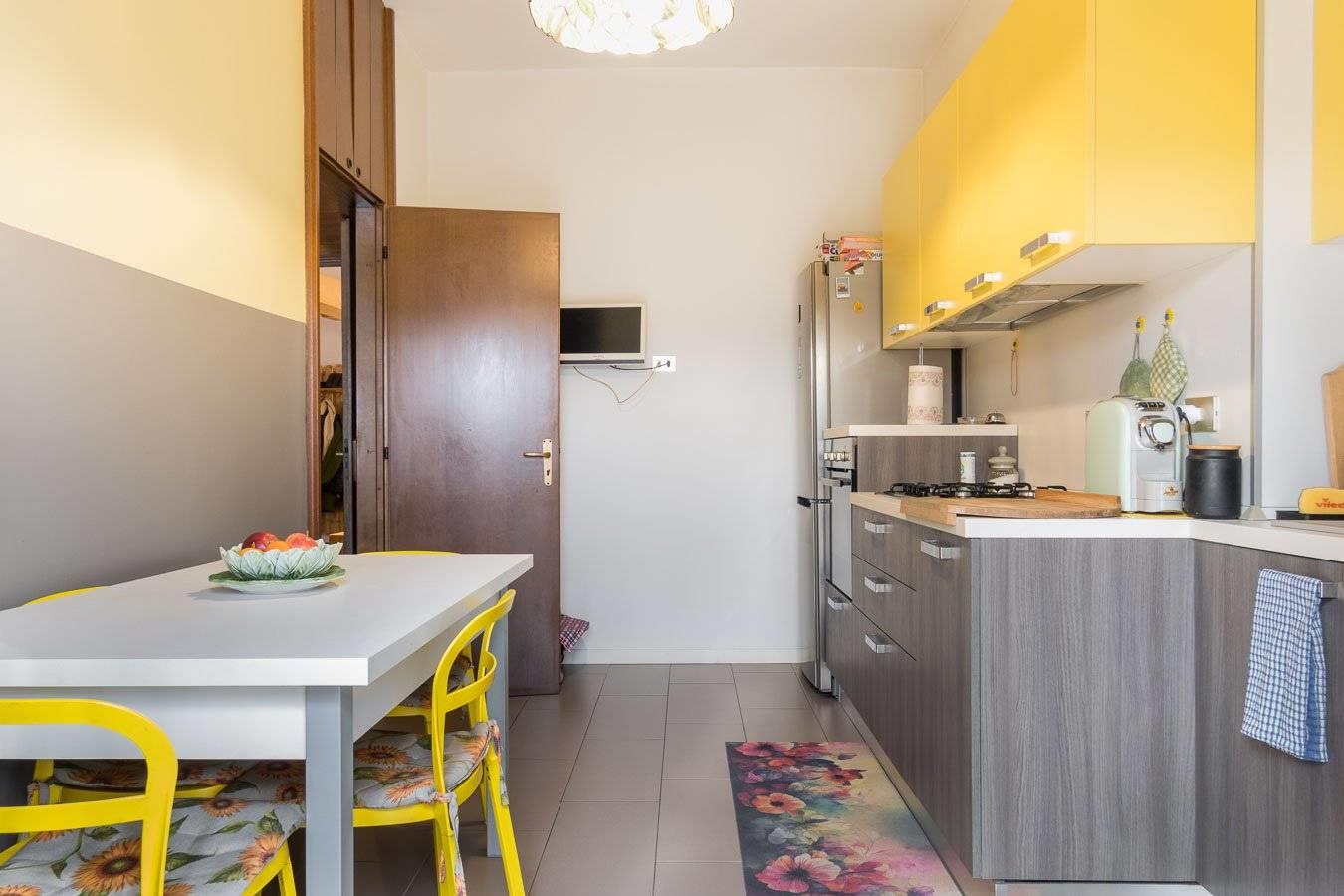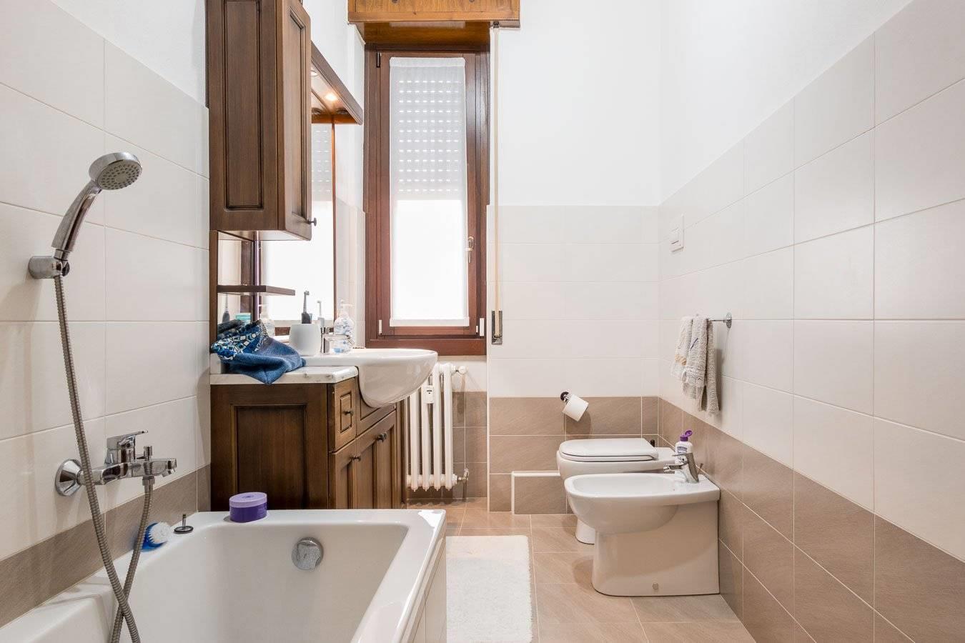 Ed è in via Tevere 20, che negli anni 80 hanno fatto sorgere questi due complessi in altezza, che hanno respiro da una parte sul tiro a segno e dall'altra su un campo privato verde. Gli appartamenti sono ben tagliati e rifiniti bene. Questo in particolare ha degli ottimi spazi e gode di una luce veramente notevole essendo esposto a sud ovest. Si entra subito in un doppio soggiorno con sala da pranzo, che è servito da un ripostiglio che non fanno più nelle case nuove. due zone notte, la prima con una camera matrimoniale e un bagno con un secondo ripostiglio in quota, la seconda servita da un bel balcone, con altra matrimoniale con bagno con vasca e un terzo ripostiglio armadiato. La cucina abitabile, è stata ricavata da una precedente camera singola, ed anche la cucina è sui 12 metri quadrati, ben vivibile e appunto abitabile.