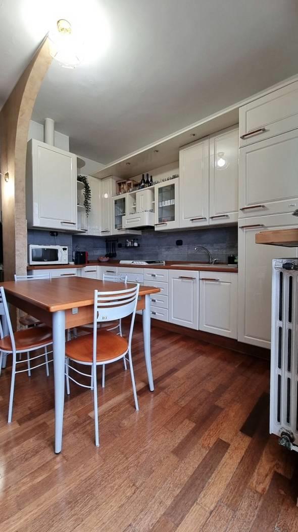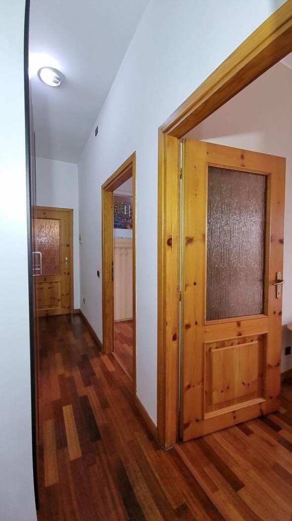 Rif. 2992DZ All’interno di una palazzina ordinata e riservata composta da sole sedici famiglie, Appartamento di Tre Locali oltre servizi situato al quarto piano. Una soluzione ideale per chi apprezza contesti tranquilli, ben abitati e una piacevole luminosità, garantita dalla posizione alta. L’ingresso introduce nella zona giorno, dove il soggiorno con cucina a vista crea un ambiente accogliente e funzionale, con accesso al balcone, dotato di tenda da sole, che offre una vista aperte, il corridoio accompagna alla zona notte, ben separata, composta da due camere da letto e da un bagno finestrato servito da doccia, e arricchito da un comodo ripostiglio soppalcato. L’abitazione si presenta in buone condizioni interne: la porta d’ingresso è blindata, gli infissi sono realizzati con struttura in alluminio e doppio vetro, le porte interne in legno/vetro e la pavimentazione è realizzata in parquet, ad eccezione del bagno rifinito in ceramica. Il riscaldamento è autonomo, con caldaia interna sostituita negli anni 2012/2014, ed è presente l’impianto di aria condizionata. A servizio del condominio è inoltre installato un depuratore d’acqua. Completa la proprietà un vano solaio di pertinenza, sovrastante l’appartamento, con soffitto rivestito in cartongesso. Acquisto BOX Doppio di mq 22 ad euro 23.000. Lo stabile ha beneficiato nel tempo di importanti interventi di manutenzione, tra cui il rifacimento del tetto con nuove tegole e solai dotati di pavimentazione coibentante.