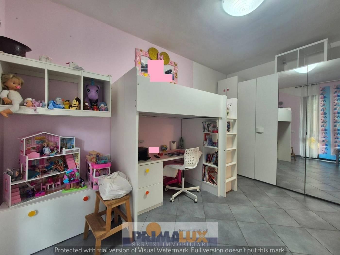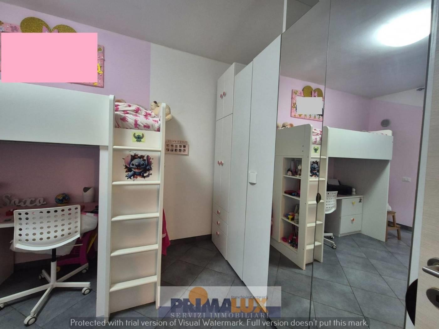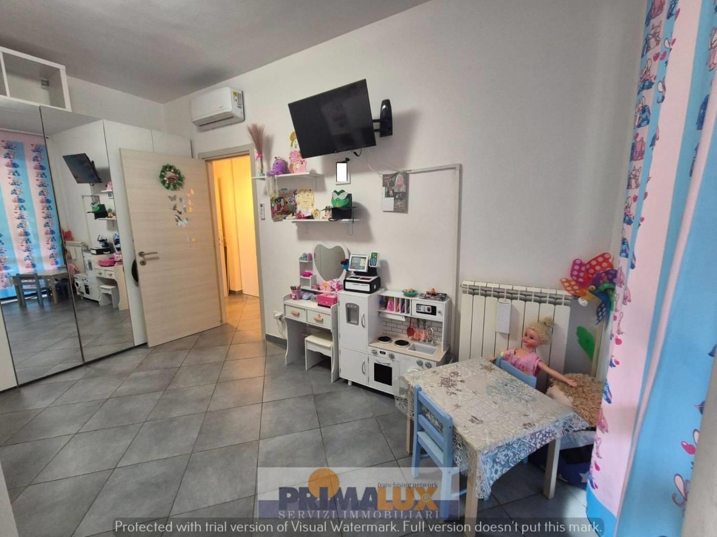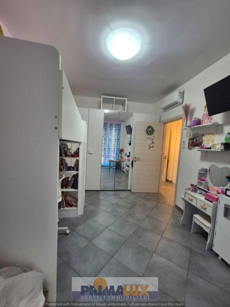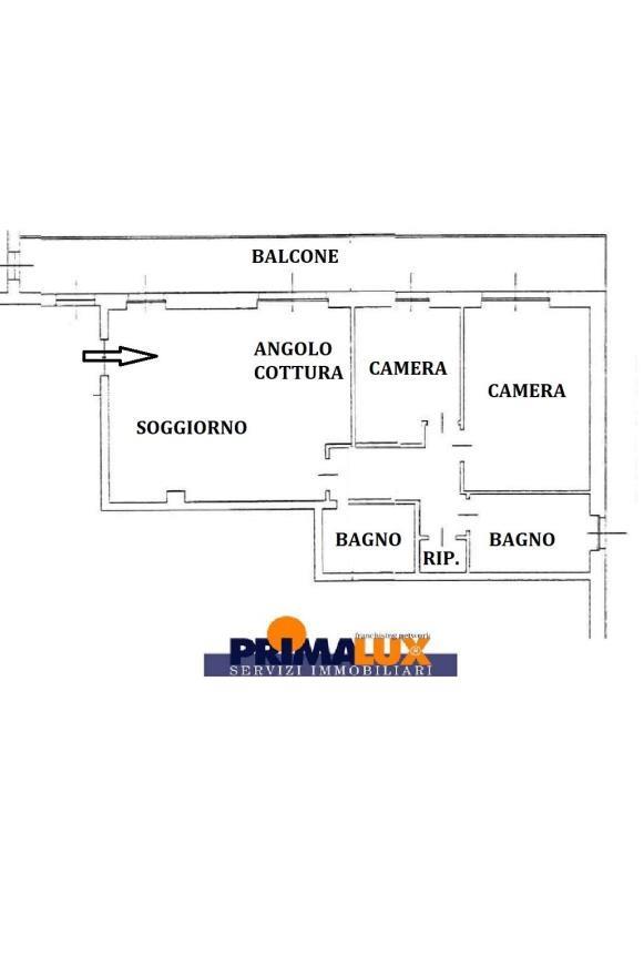 L' immobile presenta: soggiorno con cucina a vista (arredata) di generosa metratura che si affaccia su un comodo balcone che si estende fino alla zona notte dove troviamo la camera matrimoniale, la cameretta, i doppi servizi ( un bagno finestrato con vasca e uno con doccia dotato impianto di areazione forzata) e un pratico ripostiglio.