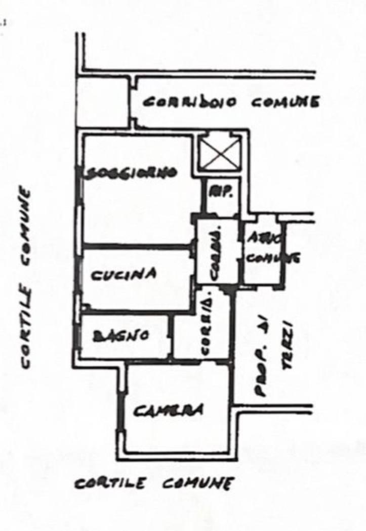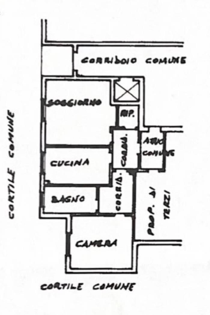L'appartamento è composto da ingresso su corridoio che conduce nell'ampia zona giorno, cucina abitabile, ripostiglio e zona notte composta da bagno e camera padronale