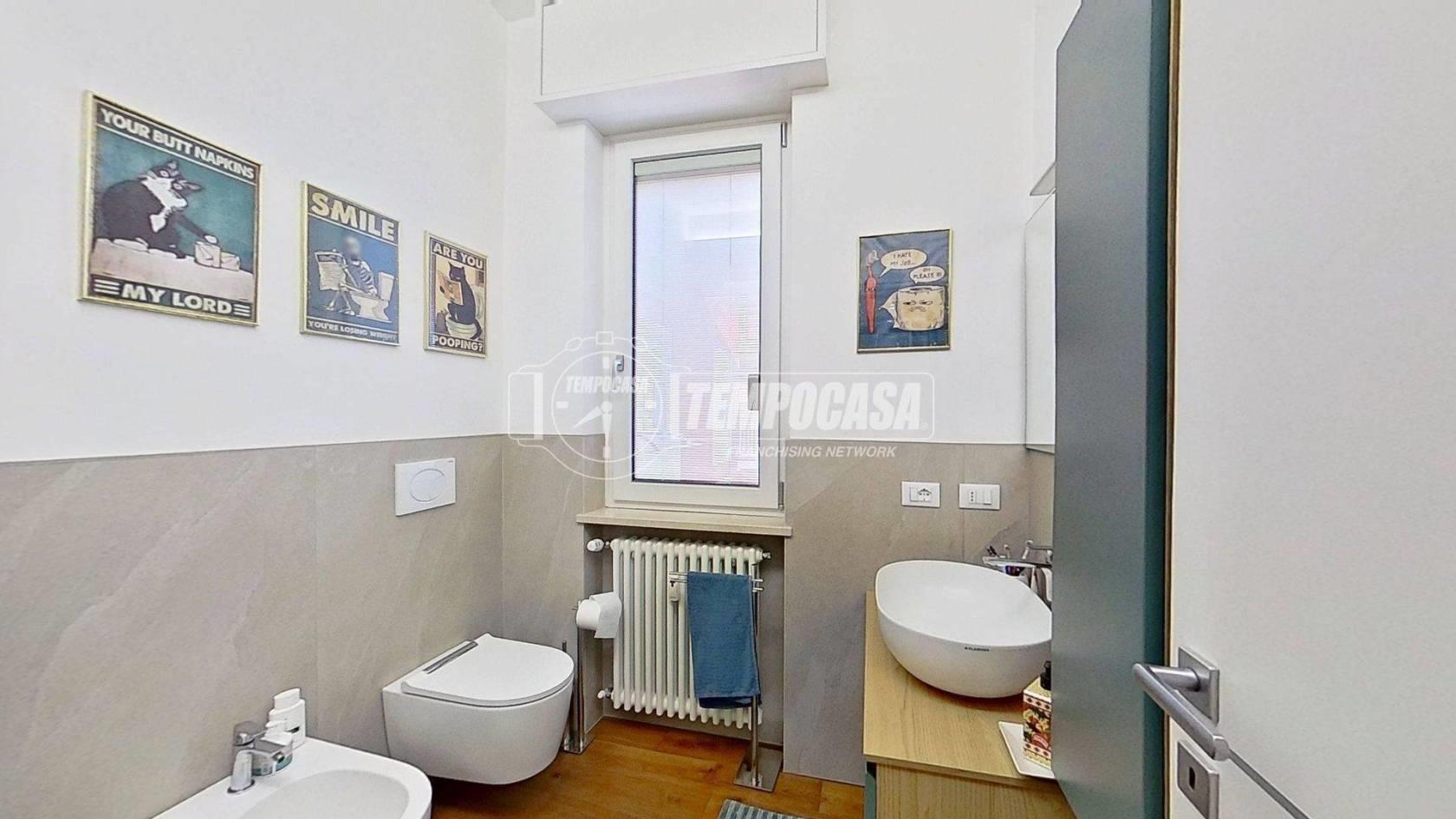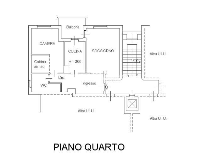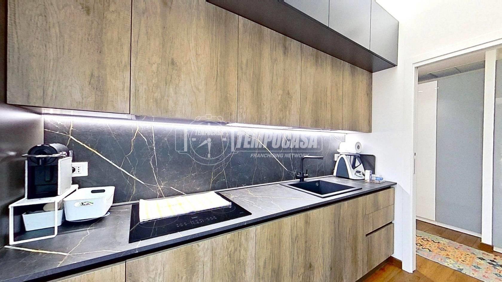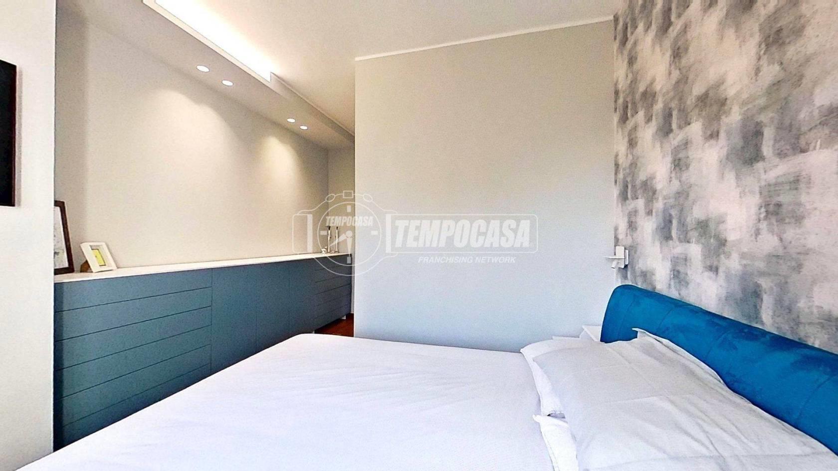 Proseguendo troviamo la cucina separata, funzionale e anch’essa con accesso al balcone, creando continuità tra gli spazi e un’ottima vivibilità quotidiana. In fondo al disimpegno si colloca il bagno, rifinito con materiali di pregio e completo di moderno box doccia. Accanto, la camera matrimoniale offre un ambiente intimo e ben organizzato, arricchito da una comoda cabina armadio.