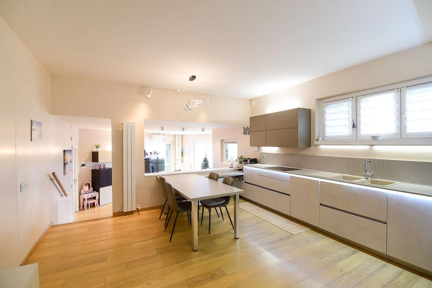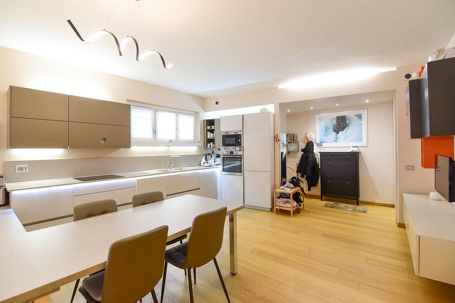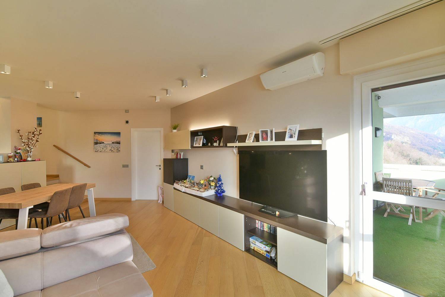 Funge da benvenuto un ampia zona giorno in open-space con accesso diretto all'ampio e panoramico terrazzo vista lago.