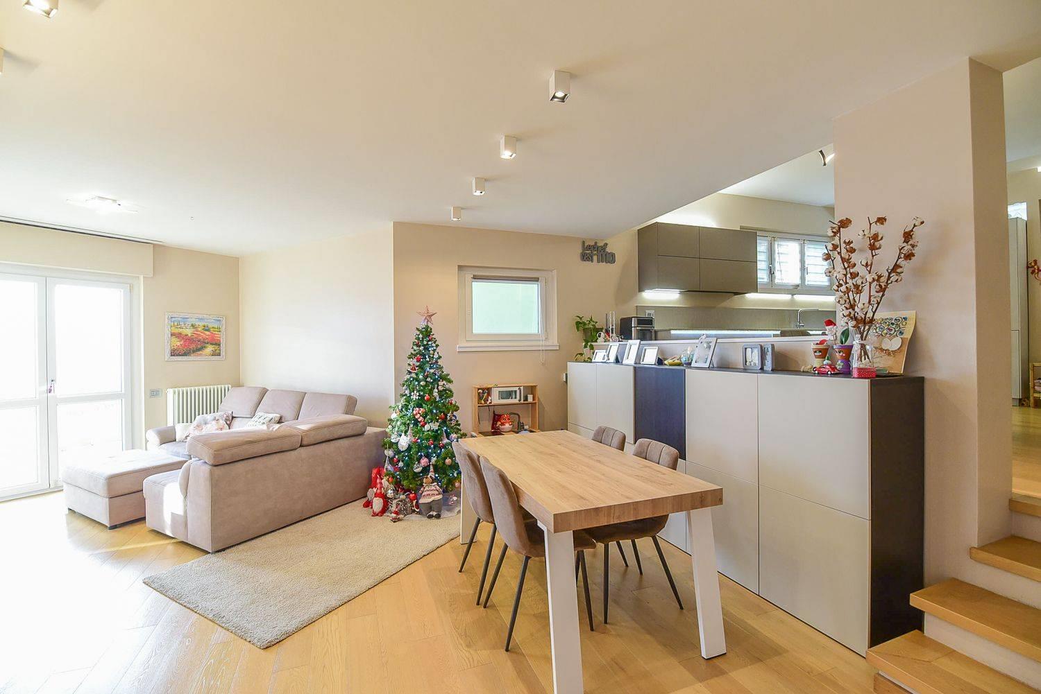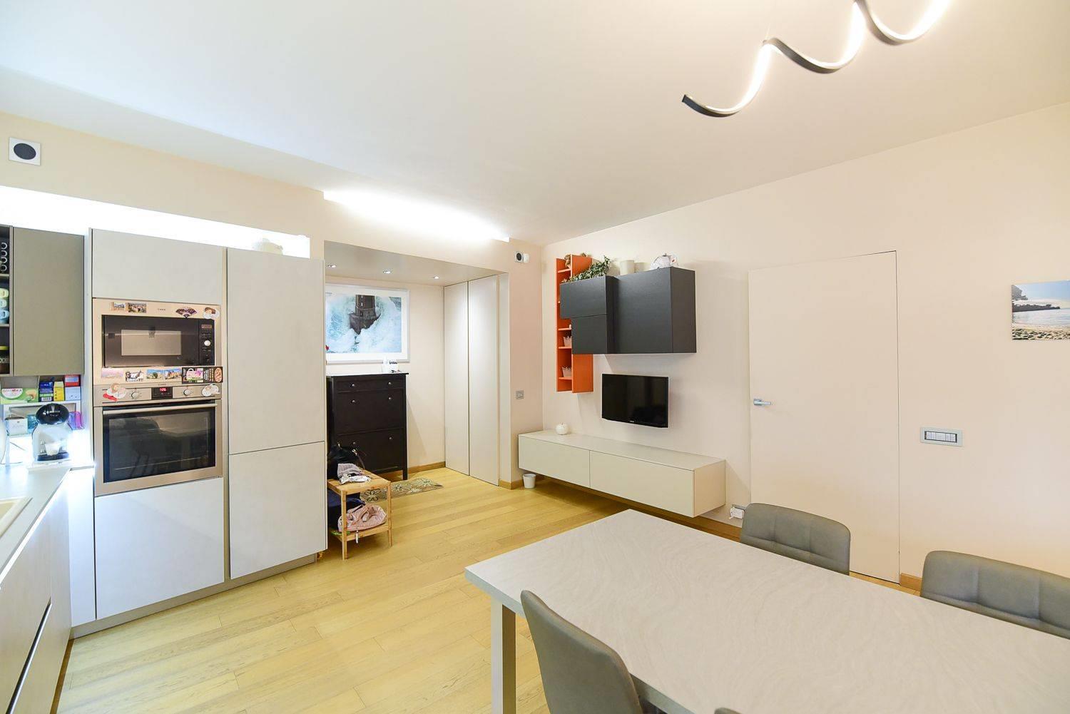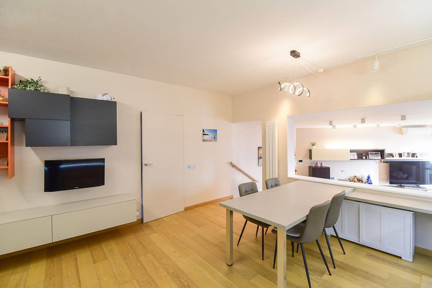 Funge da benvenuto un ampia zona giorno in open-space con accesso diretto all'ampio e panoramico terrazzo vista lago.