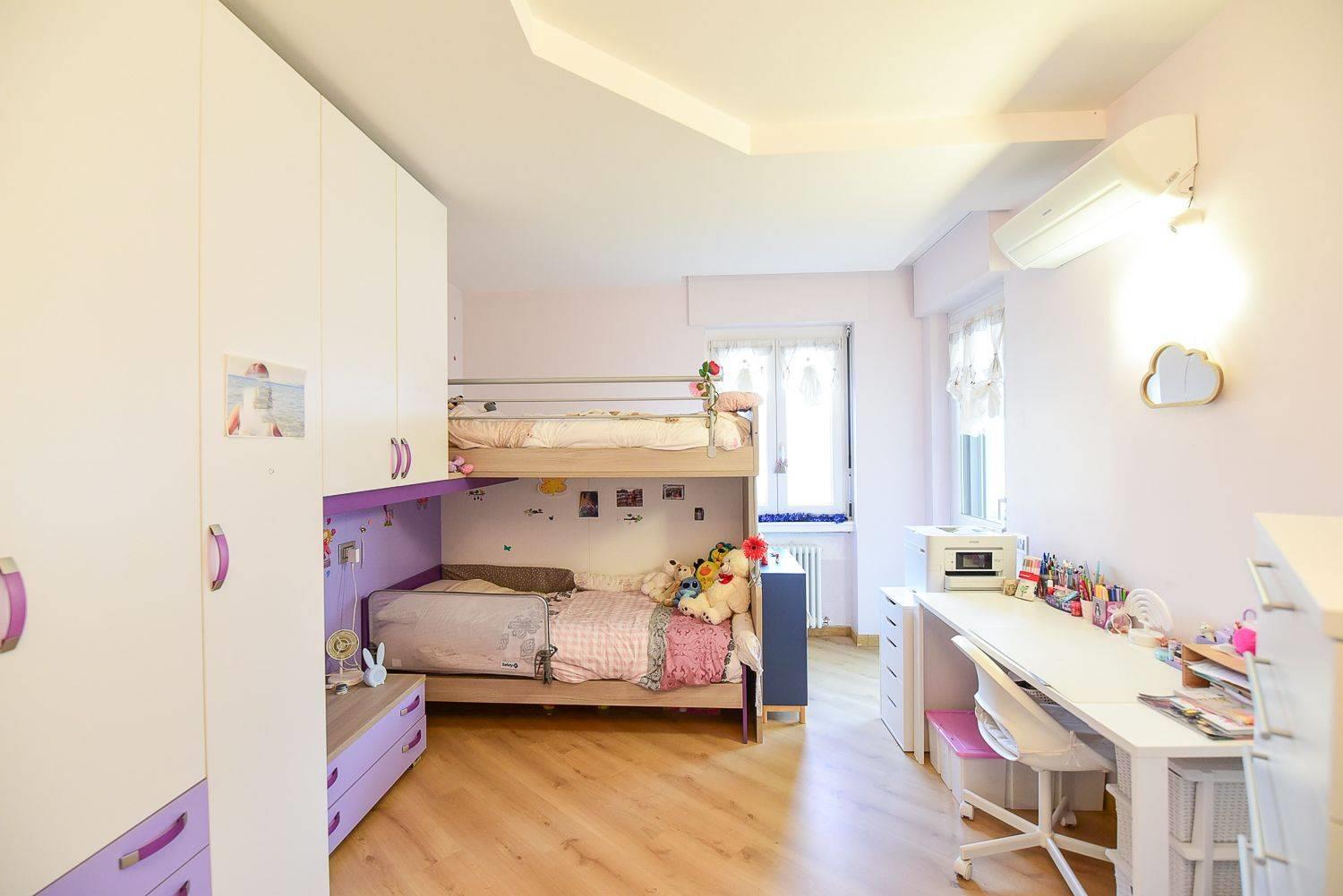 spostandoci nella zona notte troviamo uno studio e le due ampie camere da letto e i due bagni rispettivamente godono della presenza di vasca da bagno per il primo e un comodo box doccia per il secondo.