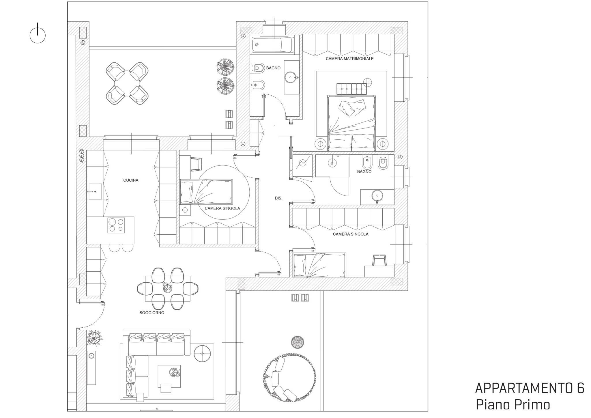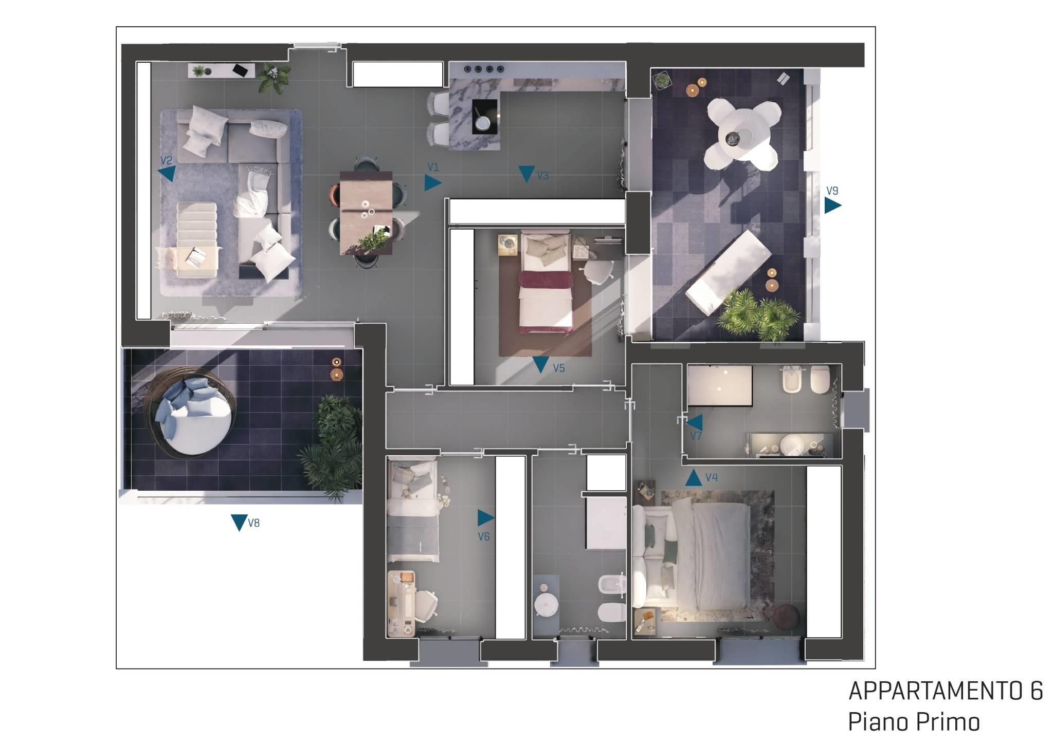L’ingresso conduce a un soggiorno luminoso con cucina a vista‚ progettato per offrire ambienti moderni‚ funzionali e accoglienti. La zona notte è composta da una camera matrimoniale con cabina armadio‚ due camere singole e doppi servizi finestrati‚ studiati per garantire comfort e praticità per tutta la famiglia.