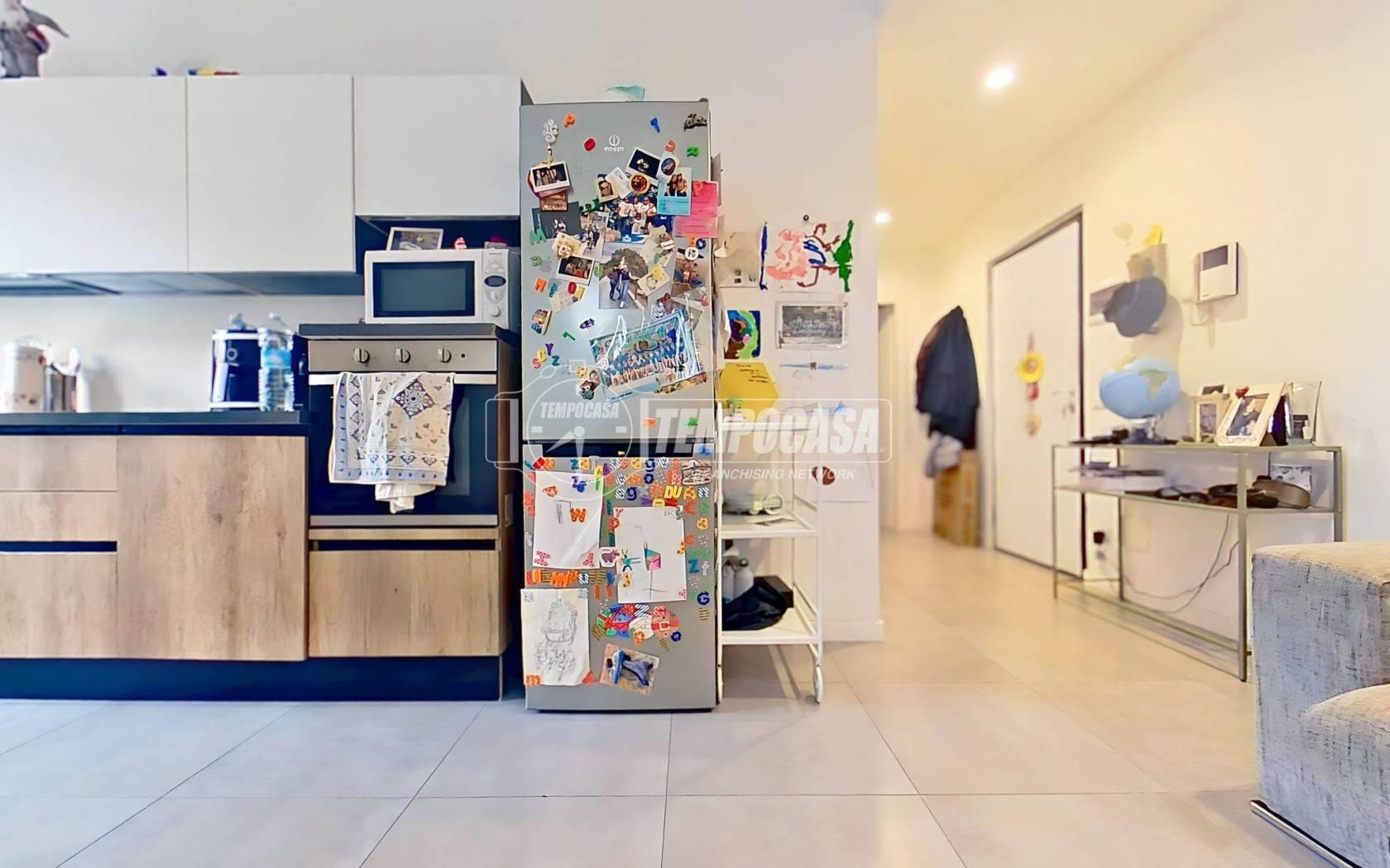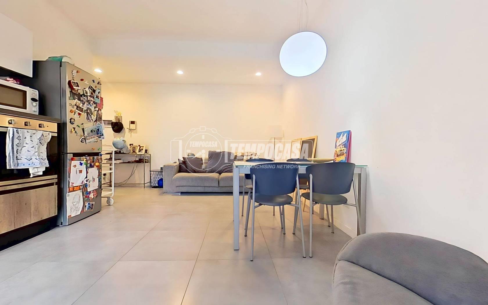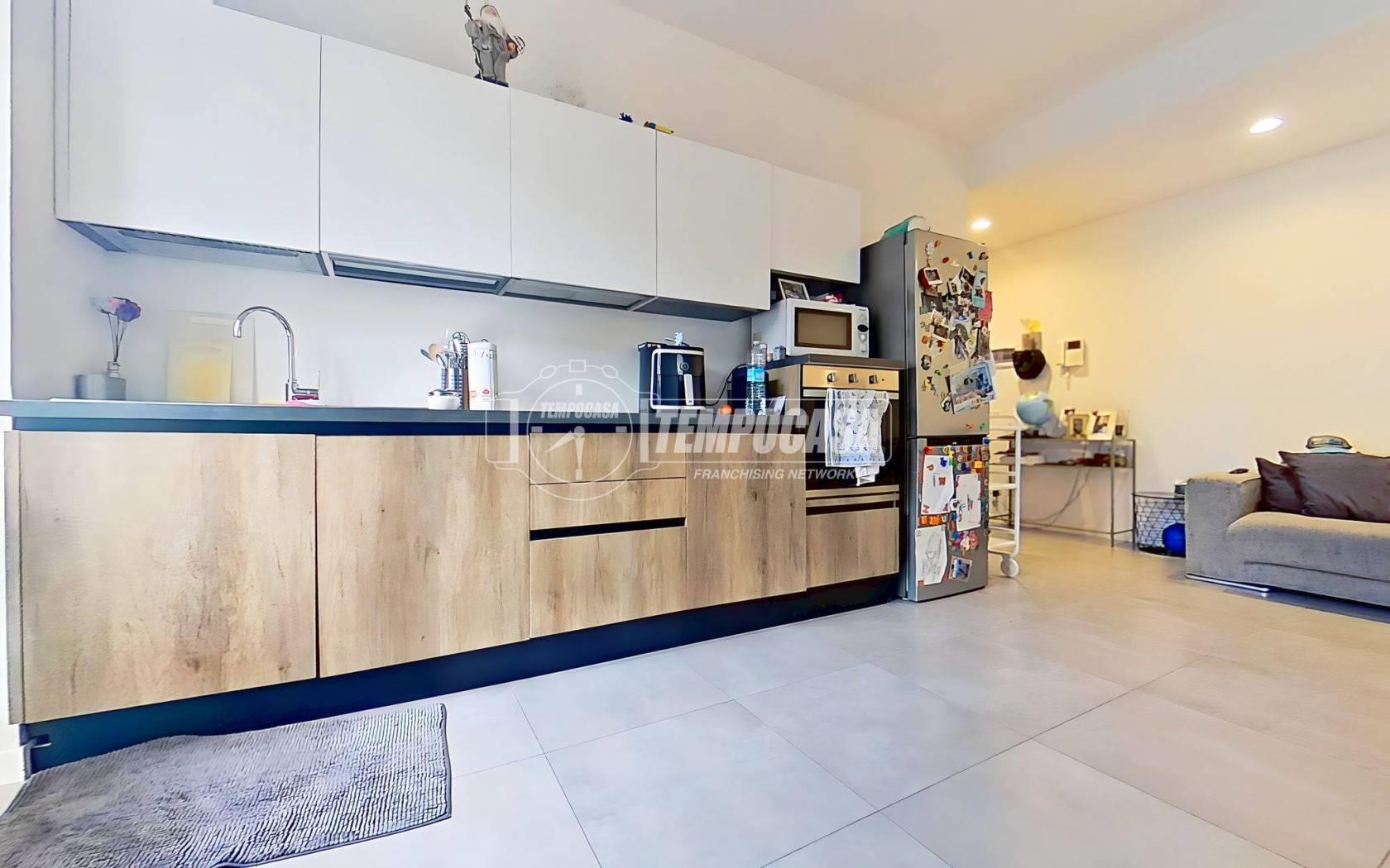 L’ingresso conduce direttamente alla zona giorno, composta da un soggiorno luminoso con cucina a vista. L’ambiente si presenta accogliente e ben organizzato, permettendo di creare una piacevole area living con spazio dedicato sia al relax sia alla zona pranzo. La disposizione open space rende l’ambiente moderno e conviviale, ideale per la vita quotidiana e per momenti in compagnia.