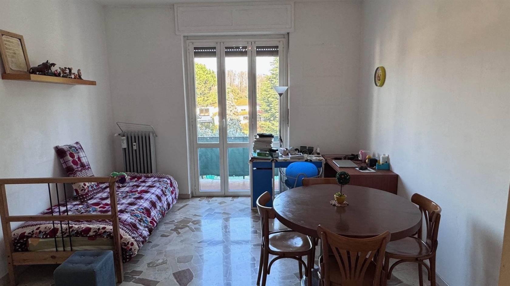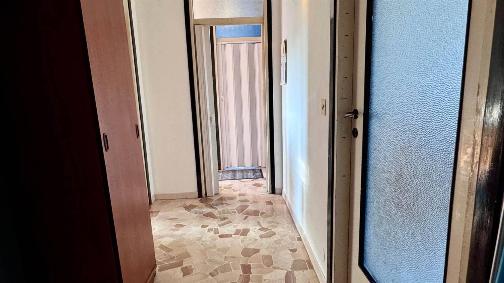 L’appartamento è così composto: ingresso su luminoso soggiorno con accesso al balcone, cucina abitabile, disimpegno nella zona notte, due camere matrimoniali e bagno finestrato.