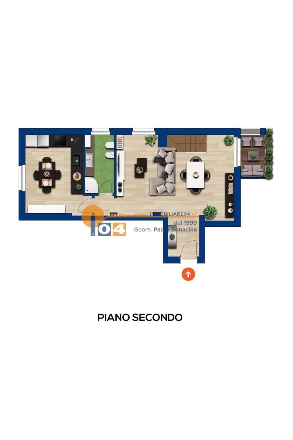 Secondo piano. Luminoso soggiorno con balcone‚ cucina abitabile separata e funzionale‚ comodo disimpegno e bagno completano il primo livello.