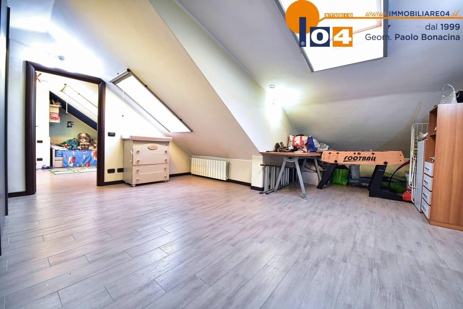 Piano superiore (con secondo ingresso indipendente) . Ampio disimpegno‚ perfetto come area studio‚ hobby o lettura oltre a zona notte: camera matrimoniale‚ camera singola‚ due utili ripostigli e bagno.