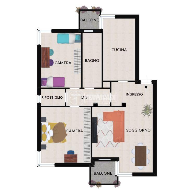 Gli spazi interni sono generosi e ben distribuiti: ampio soggiorno con accesso diretto al balcone, cucina abitabile, separata e perfetta per pranzi e cene in famiglia.