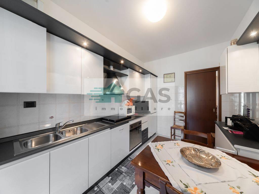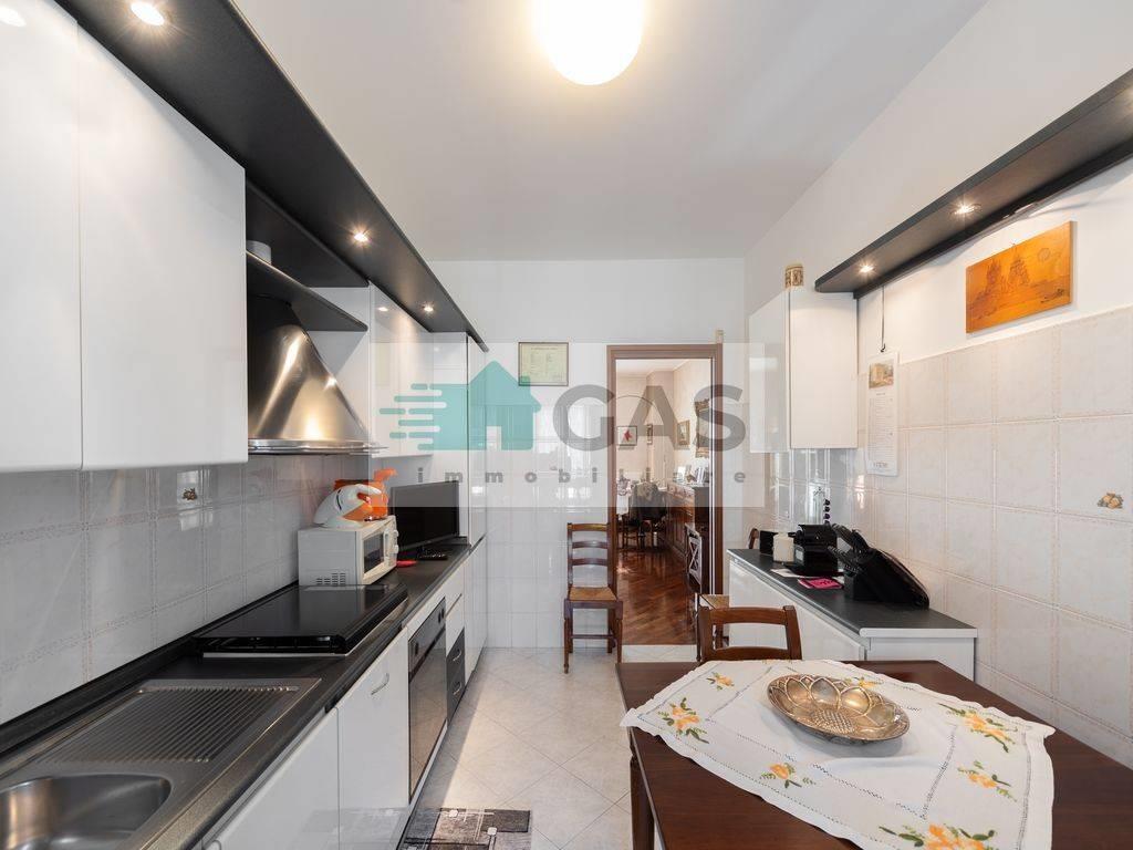 La cucina abitabile affaccia su un balcone loggiato di servizio, pratico e funzionale.
