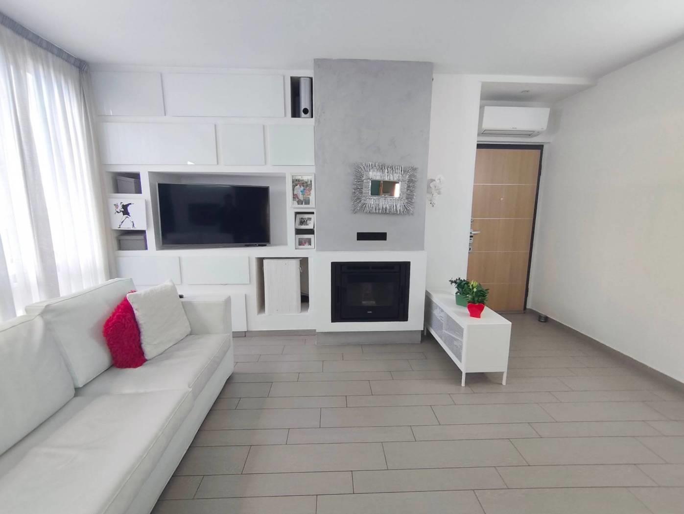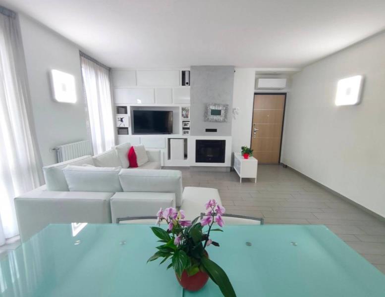 - Zona Giorno: Ingresso su un salone generoso e molto luminoso grazie alle due portefinestre. Il camino aggiunge un tocco di calore e design all'ambiente.