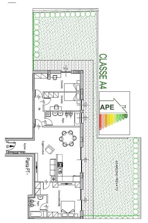 Capitolato : tutti gli appartamenti saranno termo-autonomi alimentati da pompa di calore (senza alcuna fonte di gas), riscaldamento a pavimento, predisposizione impianto di aria condizionata e di allarme, Serramenti in PVC trasmittanza