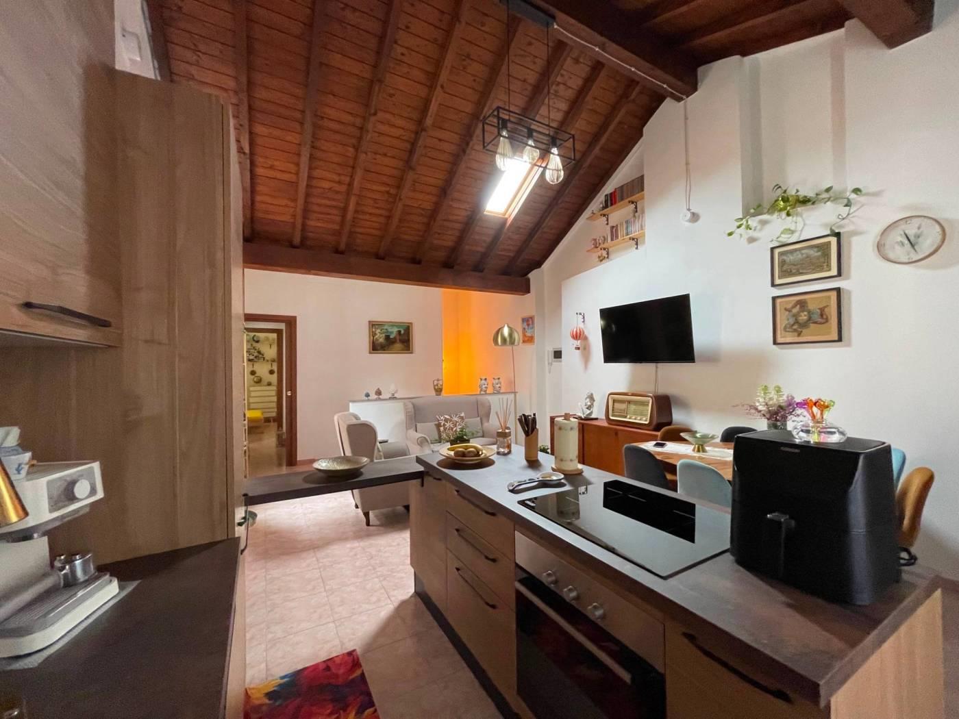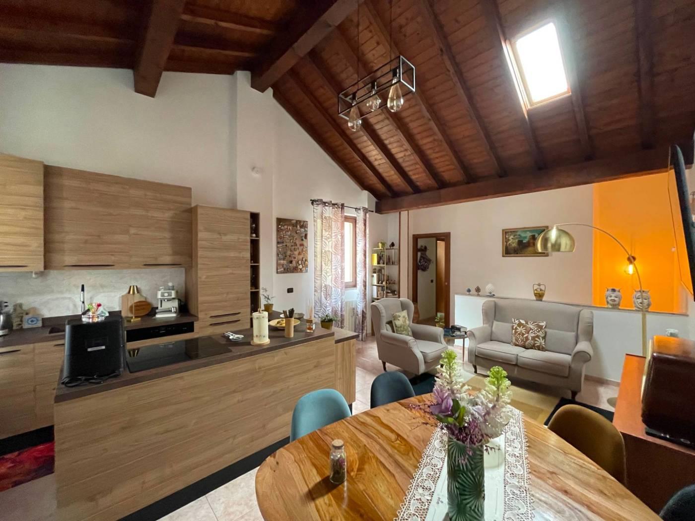 tetto con travi in legno a vista, soffitti molto alti che regalano grande ariosità e luce naturale, oltre a ottime finiture che rendono l’immobile pronto da abitare.