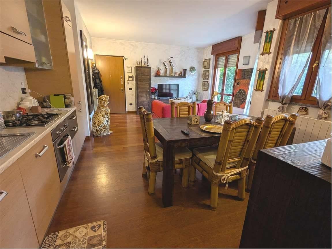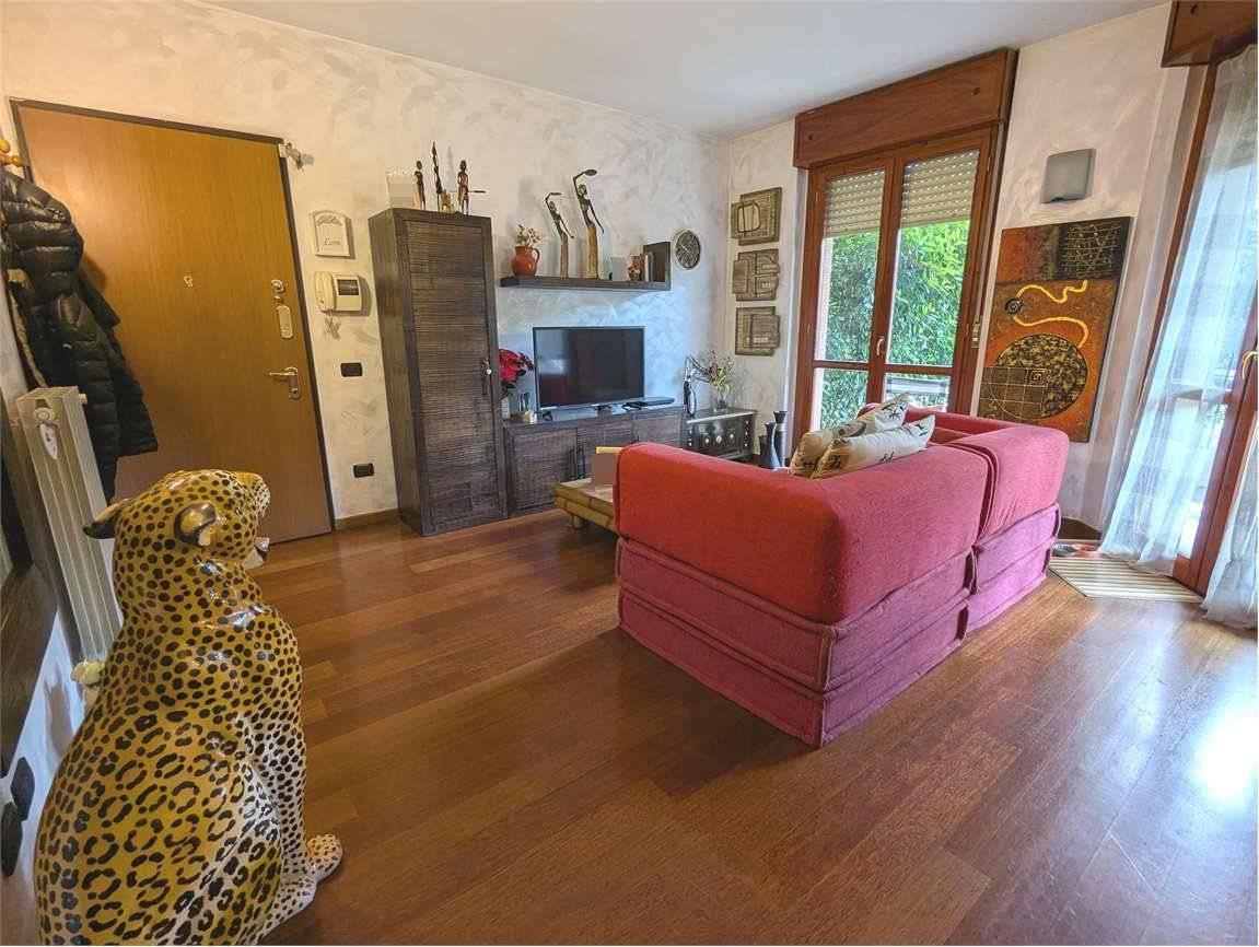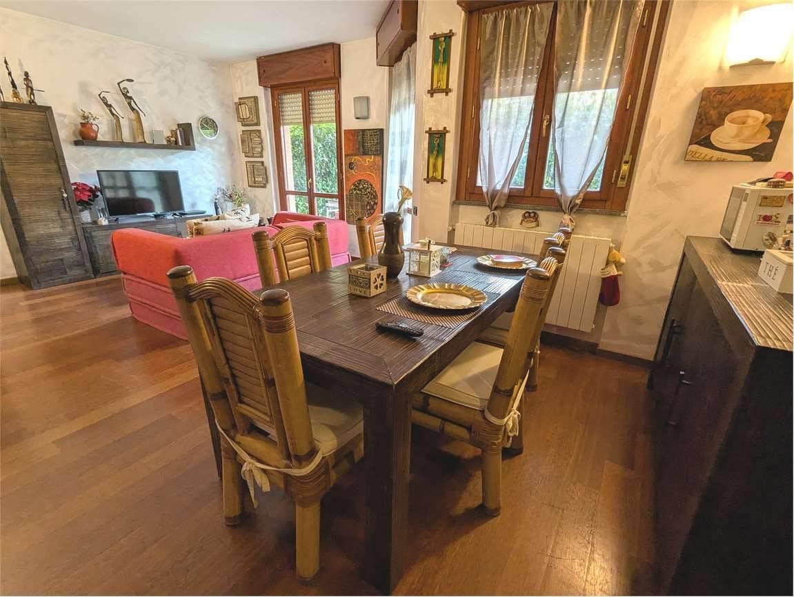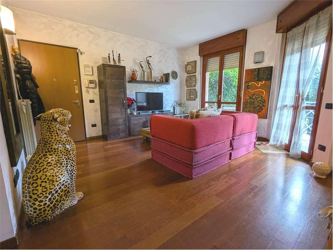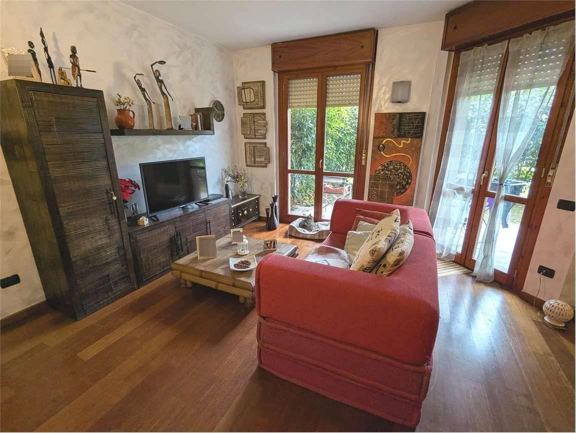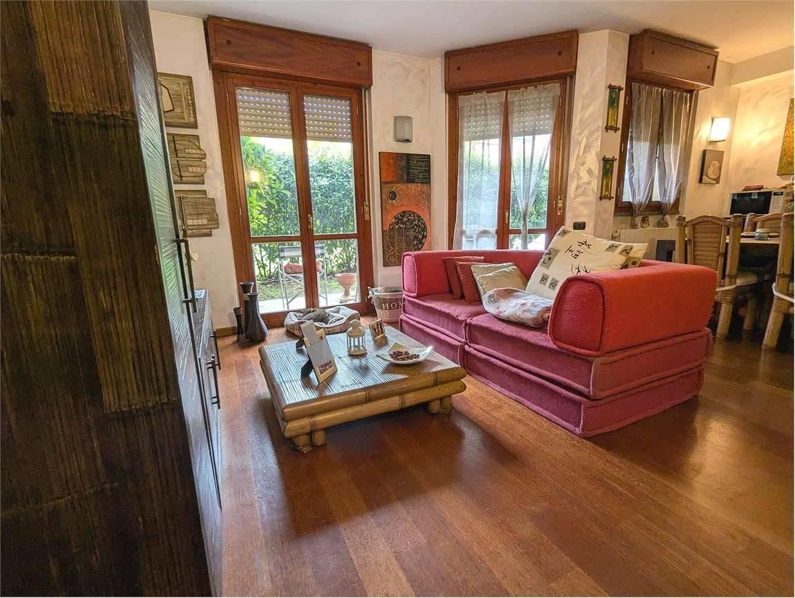Arcore, vendesi appartamento di 2 locali posto al piano terra, composto da ambiente unico di cucina e soggiorno, con accesso al portico e al giardino privato angolare, ampia camera matrimoniale e servizio.