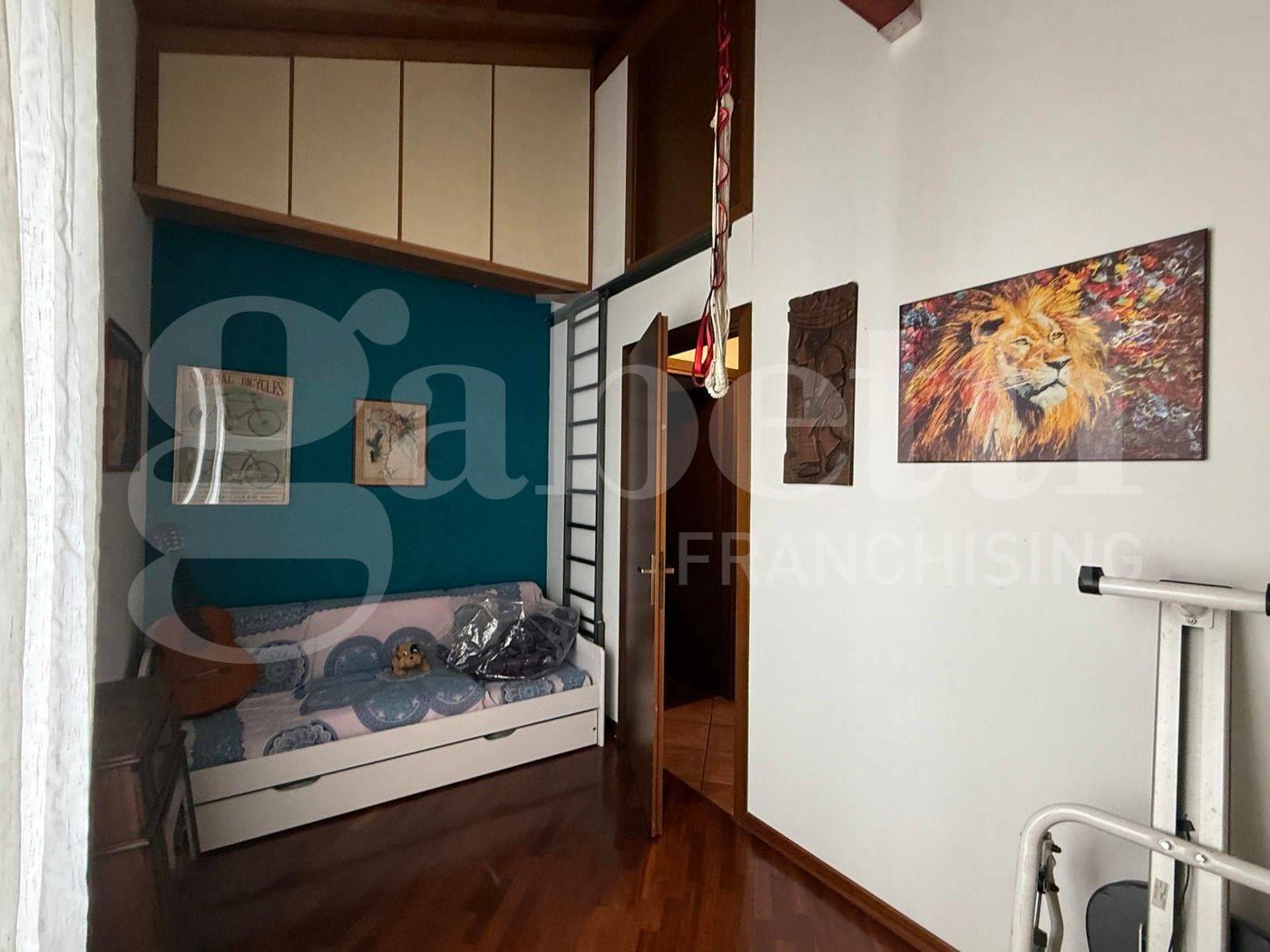 disimpegno- cameretta con sottotetto uso rispostiglio, camera matrimoniale con cabina armadio e bagno con doccia,sanitari sospesi.