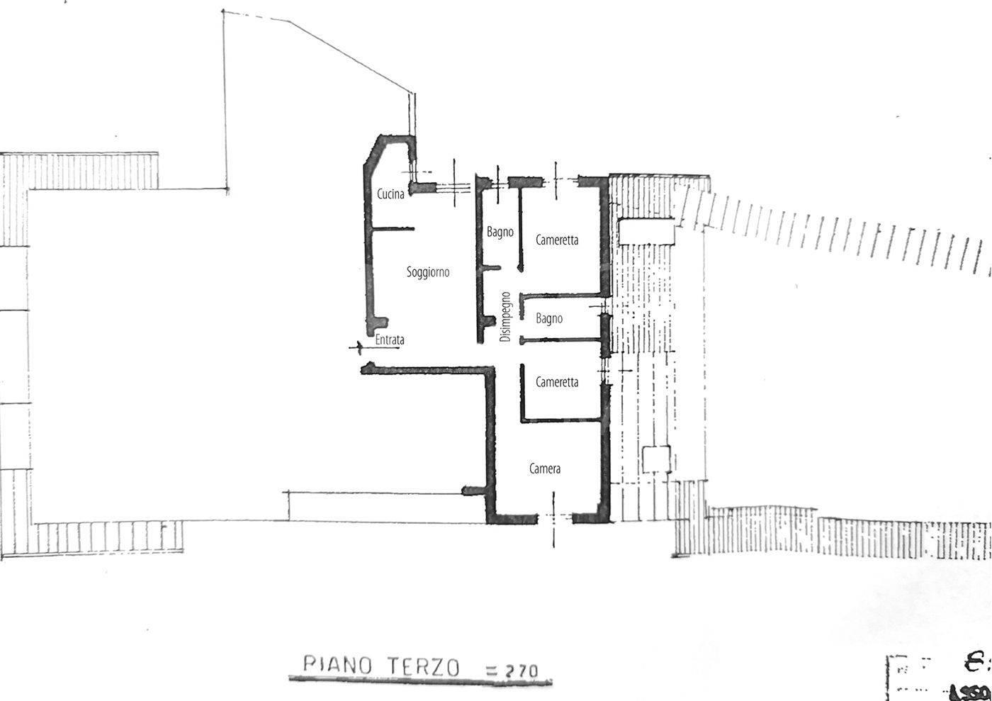 al 3° piano con ascensore ingresso,ampio soggiocno con cucina a vista disimpegno con corridoio 3 camere e 2 bagno ( vasca e doccia)