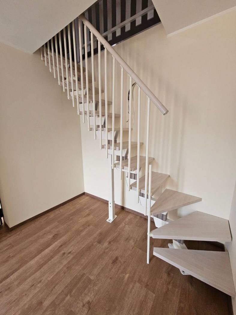 L'appartamento si sviluppa su due livelli abitativi (2 e 3) prevedendo l'ingresso, il soggiorno con l'angolo cottura a vista, bagno finestrato, camera e balcone al secondo piano, seconda ampia stanza mansardata al terzo piano