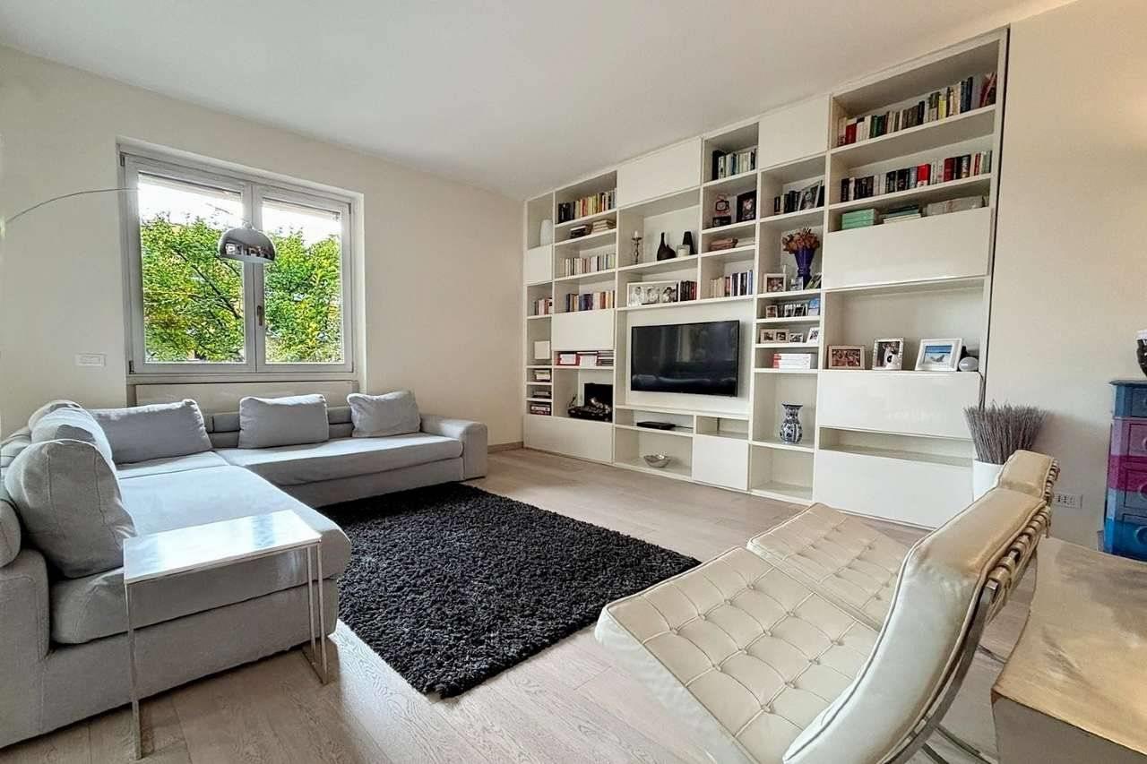 CONDIZIONI IMMOBILE: la palazzina si presenta in ottimo stato (è stata rifatta la facciata nel 2020) così come le parti comuni sempre mantenute con attenzione. L’appartamento è stato oggetto di una totale ristrutturazione e rivisitazione degli spazi interni nel 2009 con particolare cura dei dettagli e delle finiture che lo rendono un pezzo unico sul mercato immobiliare attuale. I lavori hanno riguardato il rifacimento di impianti idraulico/elettrico/sanitario, porte interne, pavimenti in parquet rovere sbiancato e resina, serramenti (in zona giorno anti sfondamento, condizionamento (con pompa di calore) controsoffittato e canalizzati in tutta la casa, aperture/chiusure delle persiane automatizzate, antifurto perimetrale e volumetrico, telecamere di sicurezza, camino a gas e pacchetto luci coreografiche in tutta l’abitazione. Nel prezzo sono compresi gli arredi su misura libreria soggiorno, tutte le cabine armadio e l’arredo terrazzo.