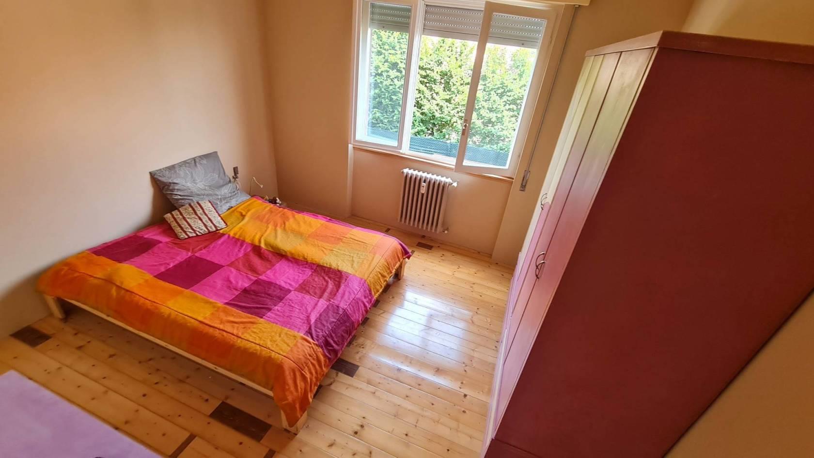 Ampio appartamento posto al primo piano con ascensore di un condominio posto in fondo ad una strada chiusa e ottimamente conservato e composto da soggiorno di generose dimensioni, cucina abitabile, balcone, disimpegno, camera matrimoniale, bagno con secondo balcone. Cantina al piano seminterrato.