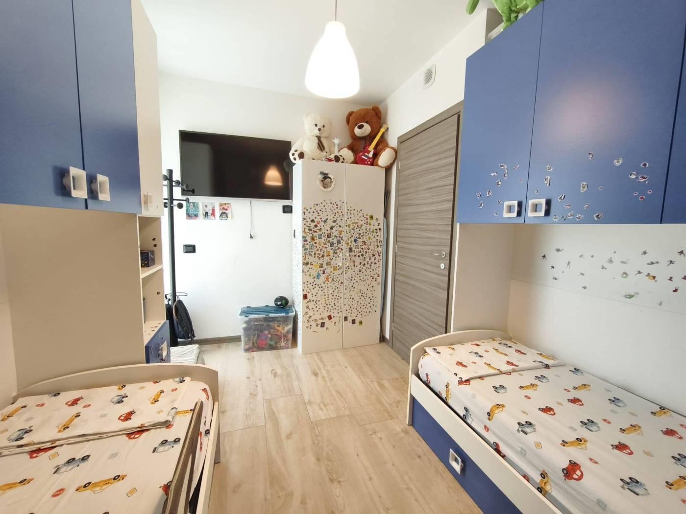 L'appartamento è dotato inoltre di infissi in legno/alluminio triplo vetro, riscaldamento a pavimento con caldaia centralizzata con contabilizzazione dei consumi, pannelli solari per aiutare acqua calda, videocitofono, pavimenti in gres porcellanato effetto legno, climatizzatore Baxi inverter caldo freddo, giardino pavimentato, con erba sintetica, porte a battente un legno venato, bagno con doccia idromassaggio, uscita in giardino Sia dal soggiorno che dalle camere, box ampio e parcheggio privato all'interno dell'area riservata..... COMPRANDO QUESTO APPARTAMENTO VI LIBERATE PER SEMPRE DELLA BOLLETTA DEL GAS/METANO!!!! Per altre info contattateci !!!!